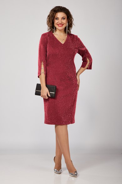Платье полуприлегающего силуэта, втачного покроя. Горловина округлой формы с капелькой по спинке в среднем шве. Рукав по низу со складками, на манжете на одну пуговицу.