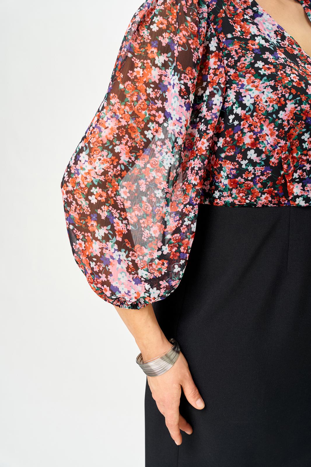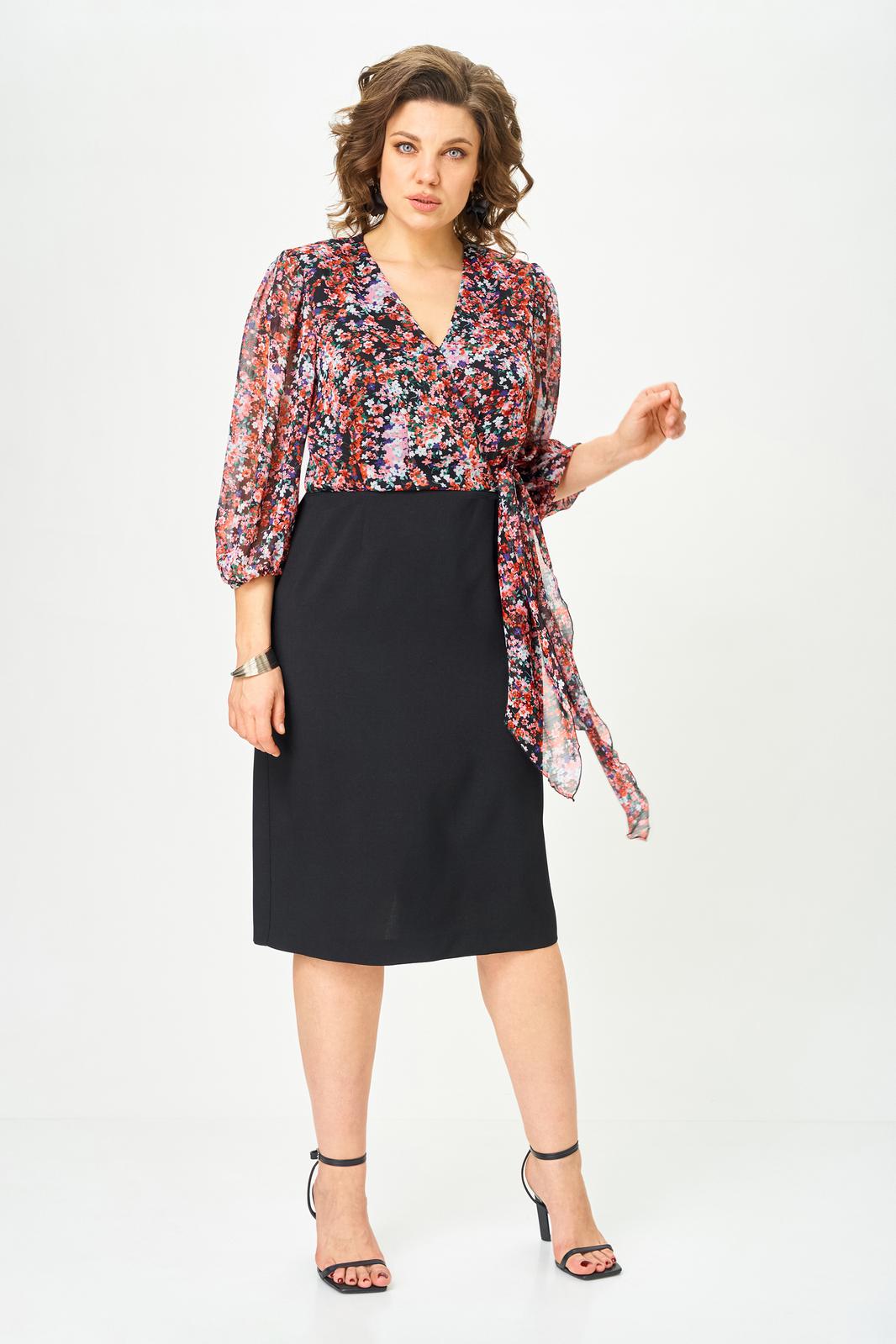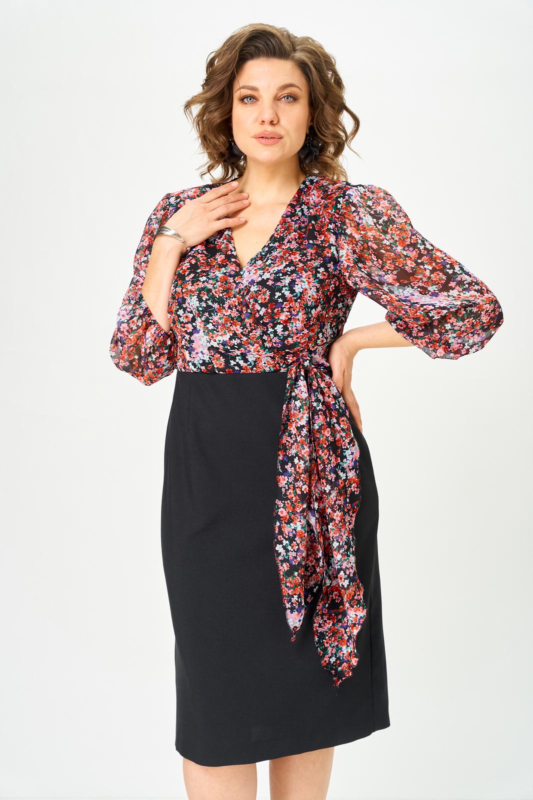 Платье женское полуприлегающего силуэта, выполнено из двух видов ткани: шифоновый верх и костюмная ткань.