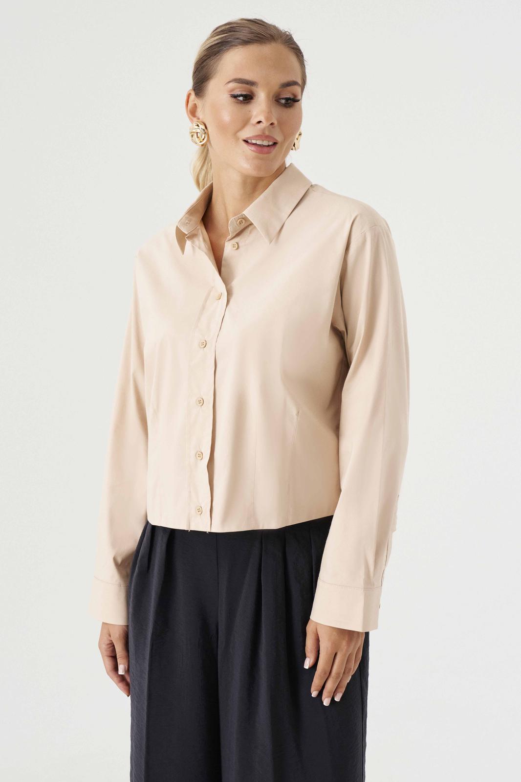 Блузка женская из смесовой ткани для повседневной носки. Блузка полуприлегающего силуэта. По переду располагаются четыре талиевых вытачки, застежка на семь обметанных петель и семь пуговиц. По спинке имеются две талиевые вытачки. Горловина обработана рубашечным воротником с отрезной стойкой. Низ рукава обработана притачной манжетой, застежка на одну обметанную петлю и одну пуговицу. По низу изделия, по краю вытачек и по верхнему шву манжеты проложены отделочные строчки. Блузка станет идеальным вариантом для любой прогулки, а также разнообразит ваш образ стильным фасоном.