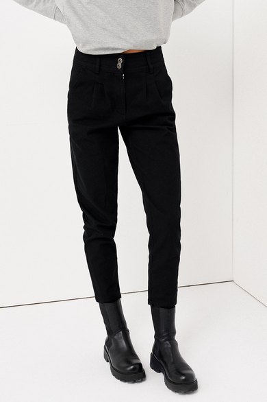 Женские брюки в стиле casual – идеальный выбор для повседневных образов. Они легкие и удобные, в них можно отправиться на прогулку, свидание, встречу с друзьями, вечеринку, работу, учебу. Высокая посадка хорошо садится по фигуре, делает акцент на талии, в меру облегает, но благодаря эластичности дарит комфорт и свободу движений. Зауженные брюки женские уместно сочетать с футболками, блузами, джемперами. В прохладную погоду можно надевать жакет кэжуал или кардиган. В качестве обуви выбирайте кроссовки, кеды, лоферы. Пошиты женские брюки из натурального хлопка, не парят даже в жаркие дни. Вы можете купить летние брюки женские в наиболее популярных размерах 42-50.