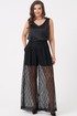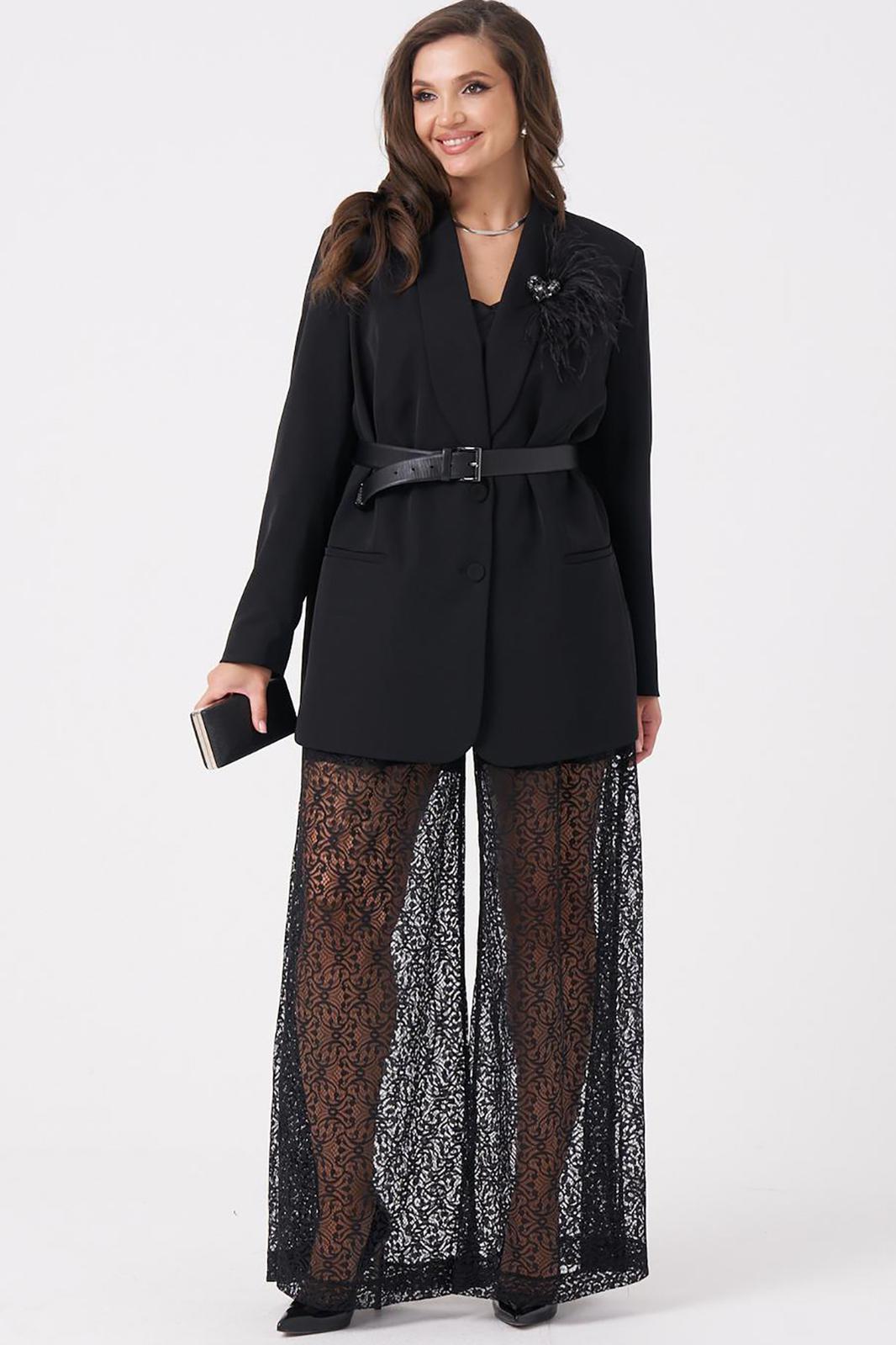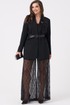 Брюки выполнены из изысканной кружевной ткани, которая придает образу романтичность и женственность. Верхний срез брюк оформлен притачным поясом, обеспечивающим хорошую посадку и аккуратный внешний вид. В задней части пояса расположена вставка на резинке, что делает модель более удобной и эластичной, позволяя легко адаптироваться к разным фигурам и обеспечивая комфорт в движении. Передняя часть брюк украшена мягкими складками, которые визуально удлиняют ноги и добавляют образу изящества и утонченности. В боковом шве располагаются боковые карманы. Такой дизайн делает брюки универсальным и элегантным элементом гардероба, идеально сочетающимся с различными топами и обувью.