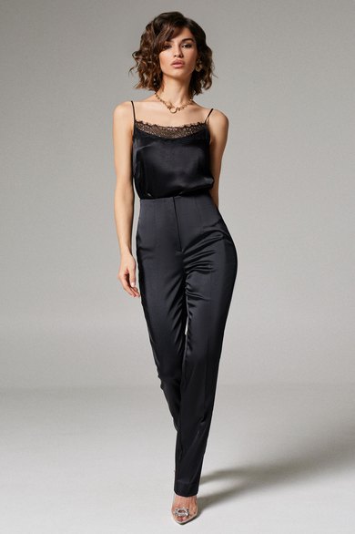 Брюки женские прямые из атласной ткани для повседневной и торжественной носки. Брюки имеют высокую посадку. Верхний срез брюк обработан обтачкой. Застежка на крючок, а также имеется застежка в среднем шве на тесьму-молнию. Передняя часть брюк имеет две талиевые вытачки. Заднее полотнище имеет две талиевые вытачки. Очень красивые брюки, в которых вы будете блистать, они станут незаменимой вещью в вашем гардеробе.
