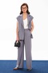 Жилет женский из смесовой ткани для повседневной носки. Жилет прямого силуэта. Жилет двубортный на одну обметанную петлю и одну пуговицу. Перед имеет две талиевые вытачки и два кармана с клапаном и двумя обтачками. Спинка разрезная с регулирующимся хлястиком. Горловина обработана пиджачным воротником. Жилет без рукавов, по пройме имеется вставка из другого материала. Жилет на поливискозной подкладке. Очень стильный жакет, в котором вы обязательно очаруете всех своим внешним видом. А главное в данном жилете вы всегда будете в центре внимания.