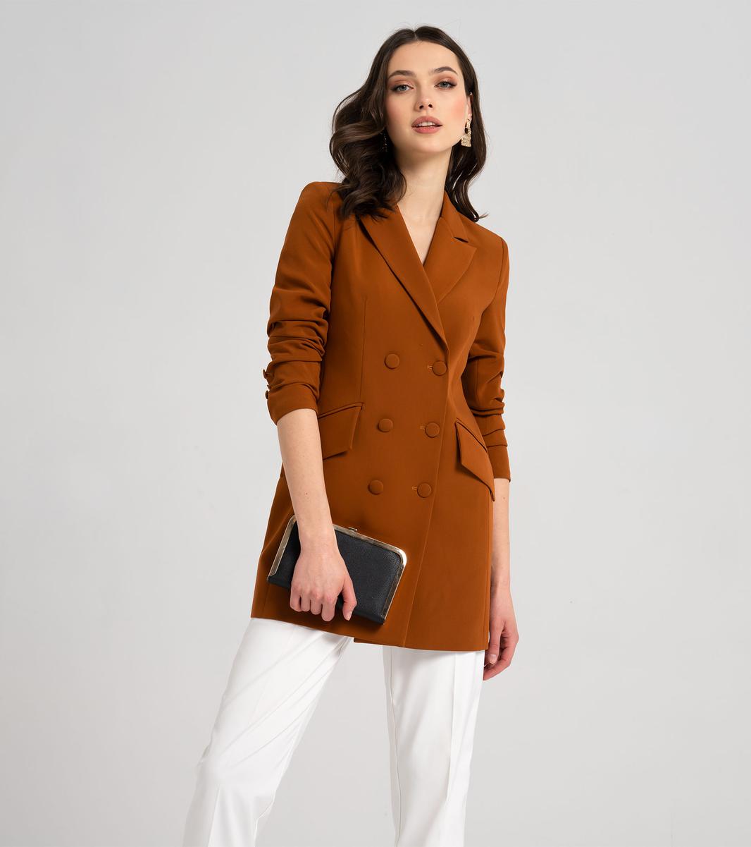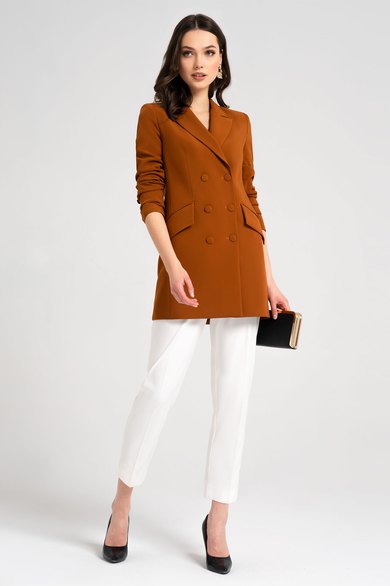 Создать стильный, элегантный , свободный образ поможет эффектный жакет, из поливискозной ткани. Жакет свободного силуэта, удлиненный, застежка двухбортная, с рельефными швами, передними талиевыми вытачками и боковыми прорезными карманами с клапаном и листочками. Спинка с рельефными и талиевыми вытачками.Рукава втачные , длинные. Шикарный образ жакета, как по случаю так и без него.