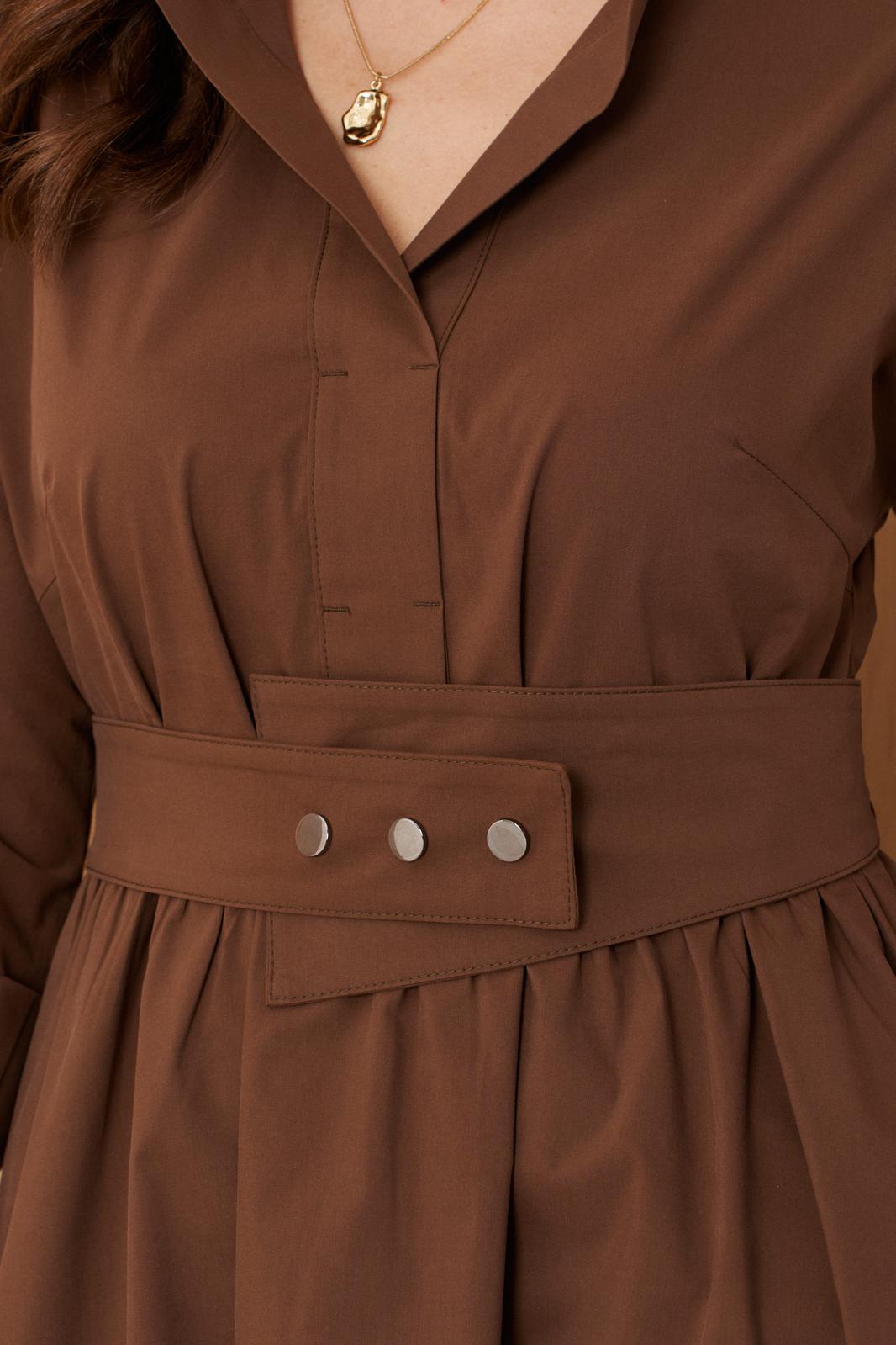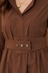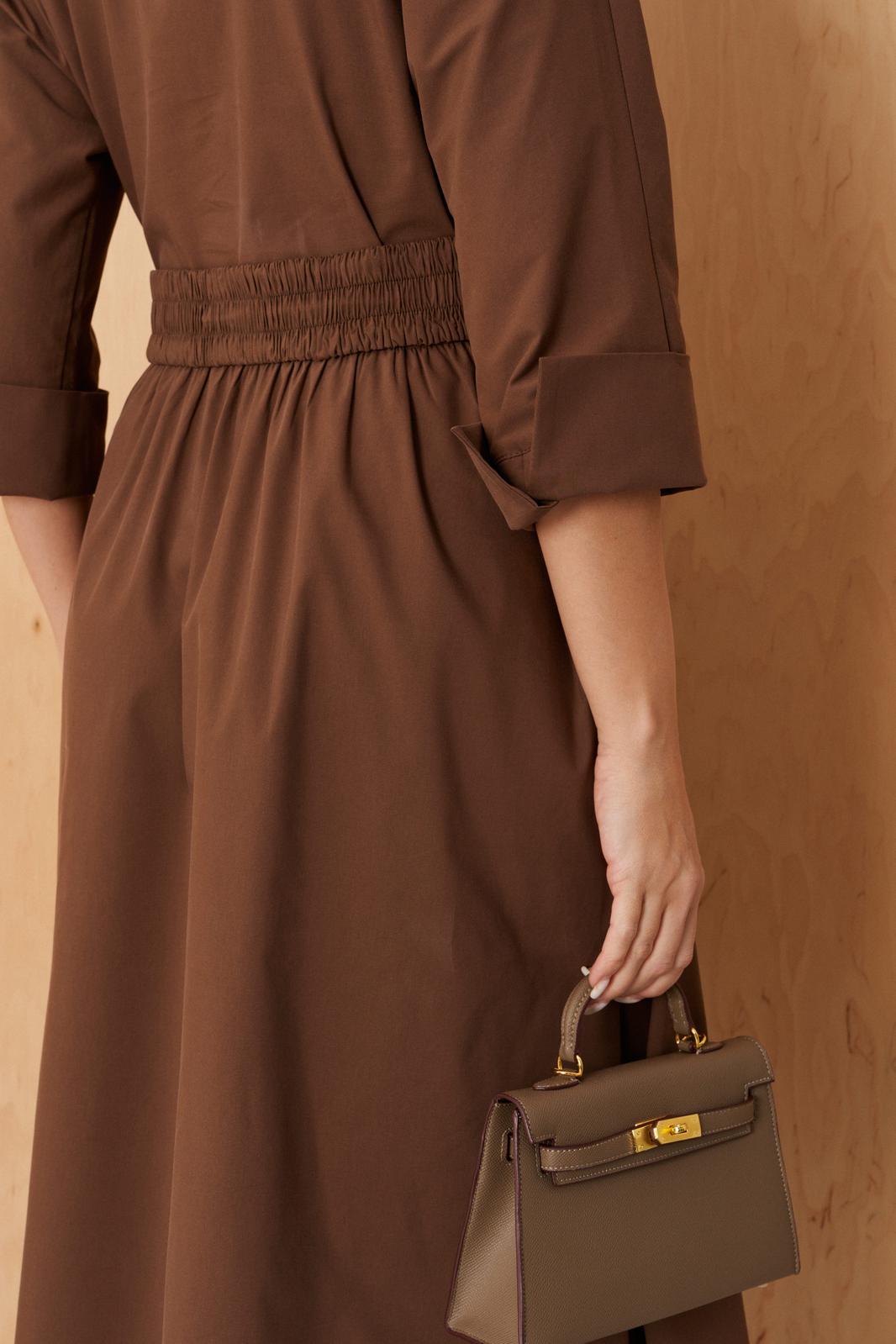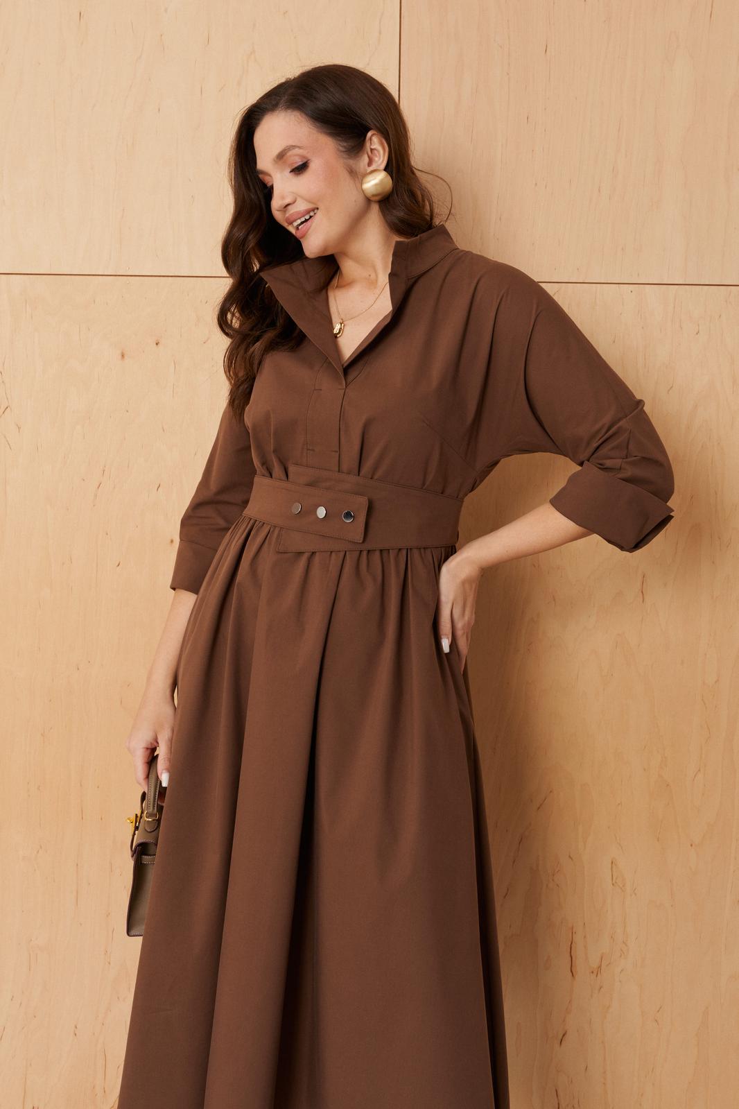 Платье женское из хлопковой ткани для повседневной носки. Без подкладки. Платье полуприлегающего силуэта. Длина изделия ниже колена. В боковых швах прорезные карманы. Рукав три четверти с манжетой. Платье укомплектовано поясом из основной ткани изделия.