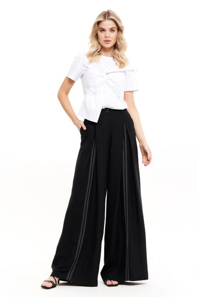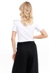 Женский джемпер из хлопкового трикотажа белого цвета – стильное и модное решение для повседневного и офисного образа. Элегантная модель прямого силуэта подойдет для делового стиля, подчеркнет женственность и создаст нарядный вид. Джемпер украшен большим бантом, который делает его особенно привлекательным и трендовым. Горловина круглая, что обеспечивает комфорт в носке, а втачные рукава длиной чуть выше локтя добавляют изящности. Такой базовый элемент гардероба отлично сочетается с юбками, брюками и джинсами, позволяя создавать разнообразные стильные сочетания для работы в офисе, праздничных мероприятий и повседневной жизни.