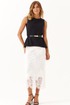 Женская юбка из нежного кружева на подкладке — это идеальный выбор для повседневной носки, который сочетает в себе стиль и комфорт. Модель слегка расширена к низу, что придаёт ей лёгкость и женственность в движении. Верхний срез украшен притачным поясом с вставкой на резинке, что обеспечивает удобную и комфортную посадку. Длина макси добавляет образу элегантности, позволяя создавать разнообразные стильные комплекты как для дневного, так и для вечернего гардероба. Юбка выполнена в молочном оттенке, что делает её универсальным элементом вашего гардероба.