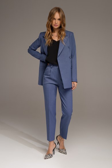 Классические укороченные брюки из текстильной ткани. Детали: брюки со средней посадкой, притачной пояс со шлевками, передние половины с небольшими мягкими складками и заутюженными стрелками, застежка на молнию и пуговицу, боковые карманы.