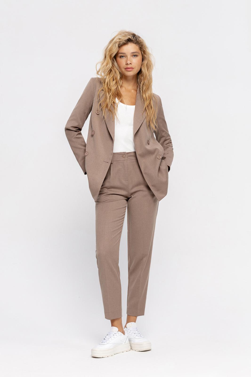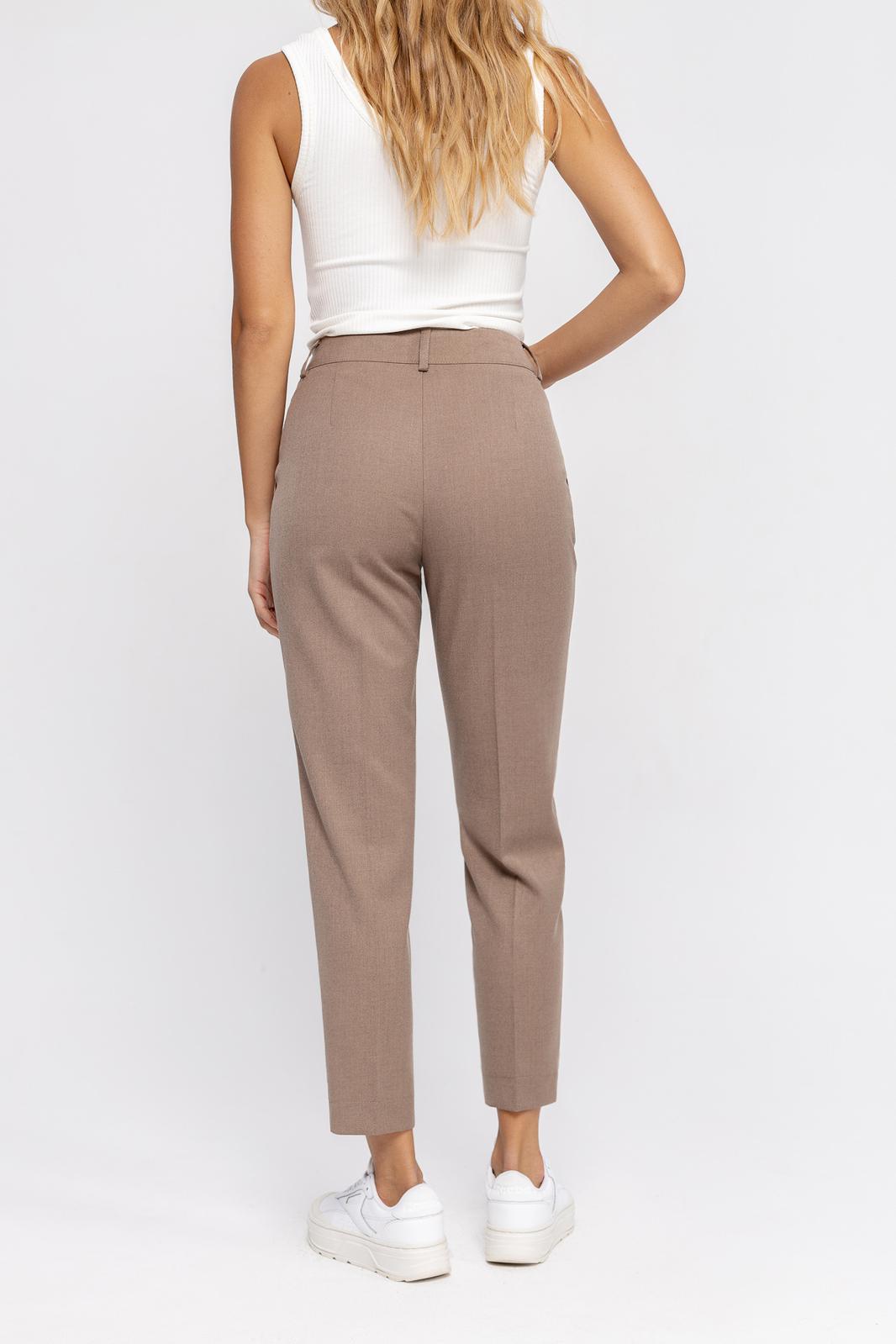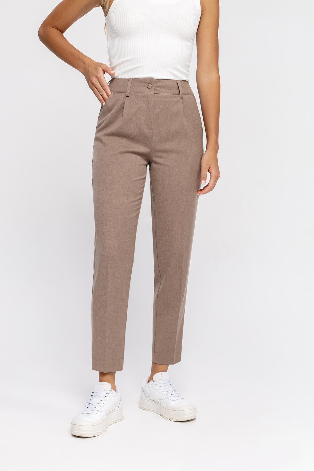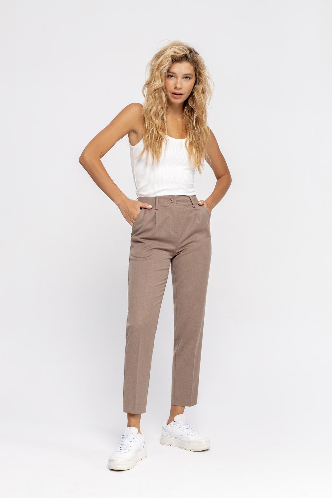 Классические укороченные брюки из текстильной ткани. Детали: брюки со средней посадкой, притачной пояс со шлевками, передние половины с небольшими мягкими складками и заутюженными стрелками, застежка на молнию и пуговицу, боковые карманы.