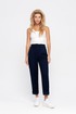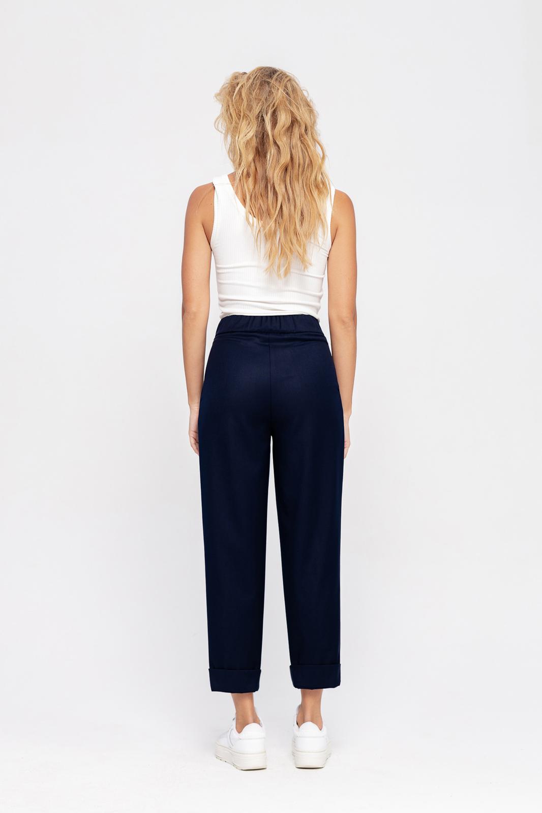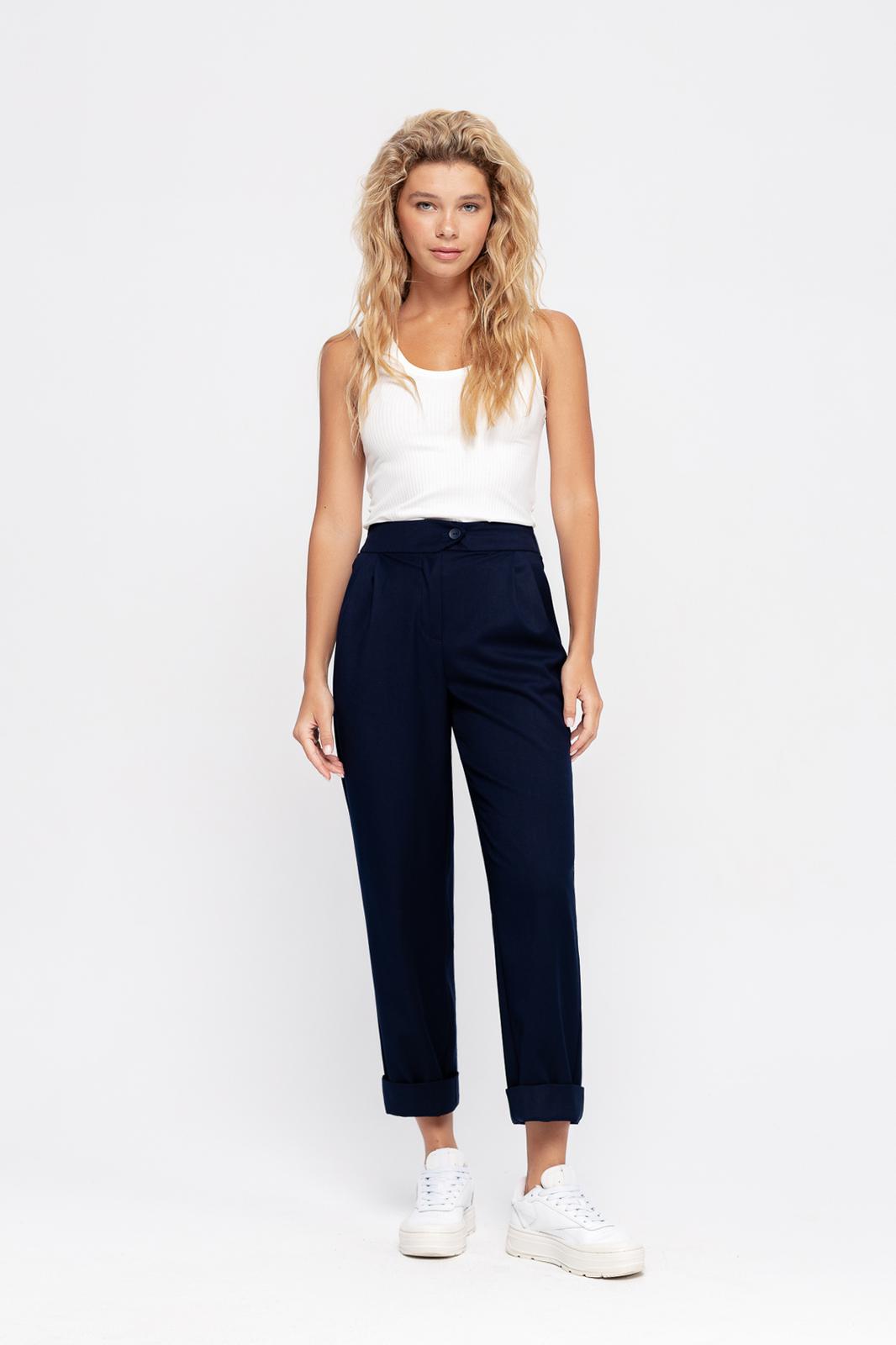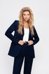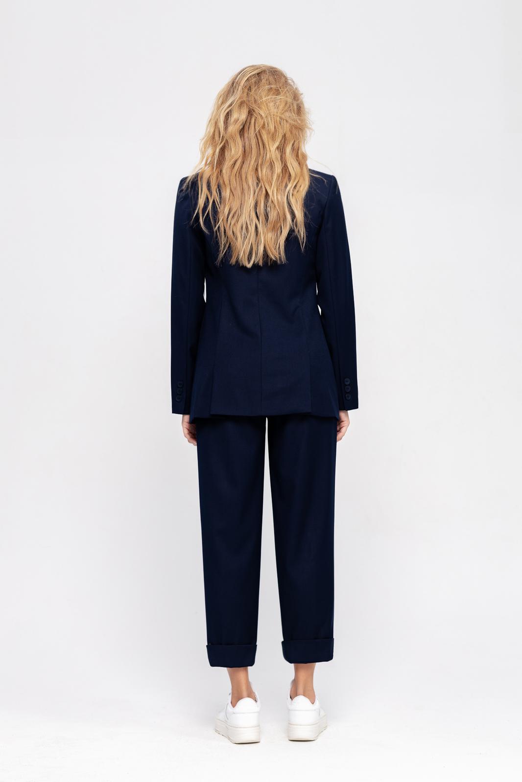 Текстильный костюм-двойка из свободного жакета со шлицами и брюк со складками Детали: жакет полуприлегающего силуэта, талиевые вытачки, пиджачный воротник, застежка на две петли и пуговицы, функциональные карманы, рукава и спинка со шлицами, жакет на подкладке из 100% вискозы. Брюки с высокой посадкой, притачной пояс со шлевками, задняя часть пояса эластичная- с резинкой, застежка на молнию и пуговицу, боковые карманы, передние половины с двумя складками