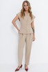 Костюм-двойка из приталенного жилета с воротником-стойкой и укороченных брюк с поясом-резинкой.