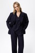 Текстильный костюм-двойка из свободного жакета и прямых широких брюк со стрелками.