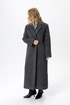 Детали: прямой силуэт, свободный покрой, расширенная линия плеч, пиджачный воротник, двубортная застежка на петли и пуговицы, рукава втачные со шлицей, функциональные карманы, спинка со средним швом и высокой шлицей, пальто на подкладке.