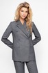 Текстильный классический жакет прямого кроя. Детали: жакет полуприлегающего силуэта, пиджачный воротник, перед с прорезными карманами, двубортная застежка на петли и пуговицы, спинка со средним швом, рукава втачные двухшовные, жакет на подкладке