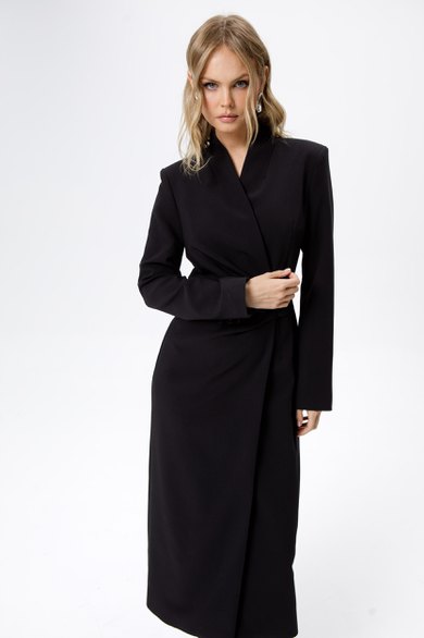Асимметричное платье приталенного силуэта.