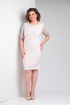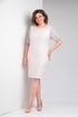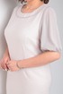 Платье женское относится к нарядной торжественной одежде. Горловина по переду округлой формы, по спинке с V-образным вырезом. Застежка на потайную тесьму, молнию в среднем шве спинки. Платье на подкладке. Под горловиной вставлен кант из отделочной ткани. Рукава выполнены из отделочной ткани., низ рукава на резинке. Длиа спинки 95см. Длина рукава 40см