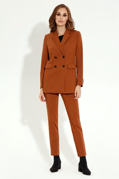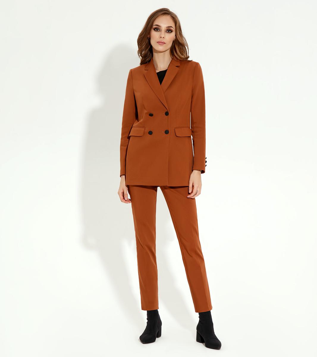 Модный двубортный жакет из хлопковой ткани. Жакет полуприлегающего силуэта с застежкой на петли и пуговицы. По переду и спинки имеются рельефы, которые обеспечивают отличную посадку по фигуре. Рукава длинные двухшовные, локтевой шов со шлицей с декоративными петлями и пуговицами. По переду карманы с клапаном. Только перед жакета на подкладки, что обеспечивает особый комфорт при носки. Такой классический жакет отлично сочетается как с классическими брюками, так и с джинсами, создавая самый модный лук нынешнего сезона.