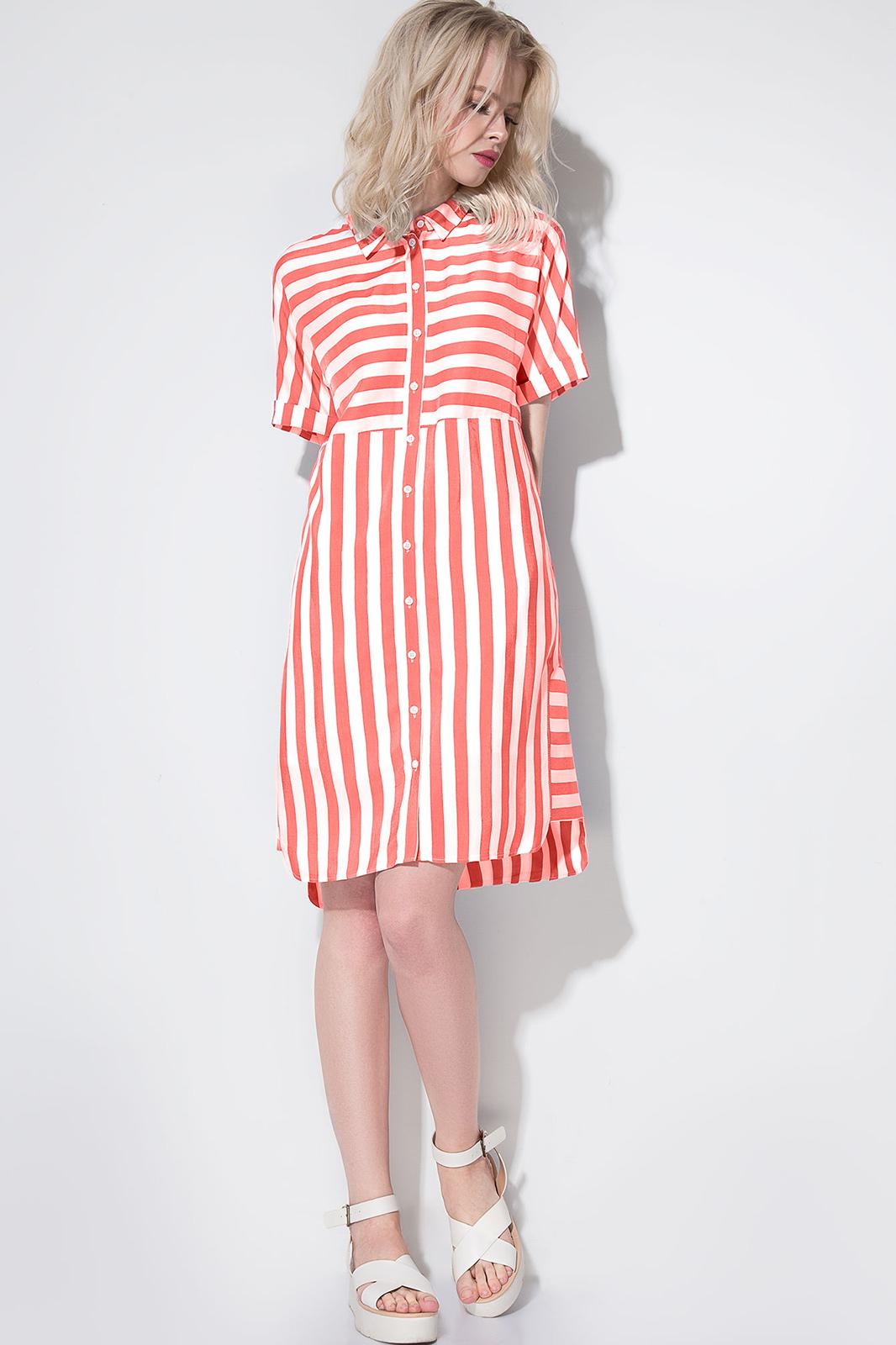 Платье-рубашка женское Платье прямого силуэта с застежкой на петли-пуговицы по переду Рукав спущенный короткий