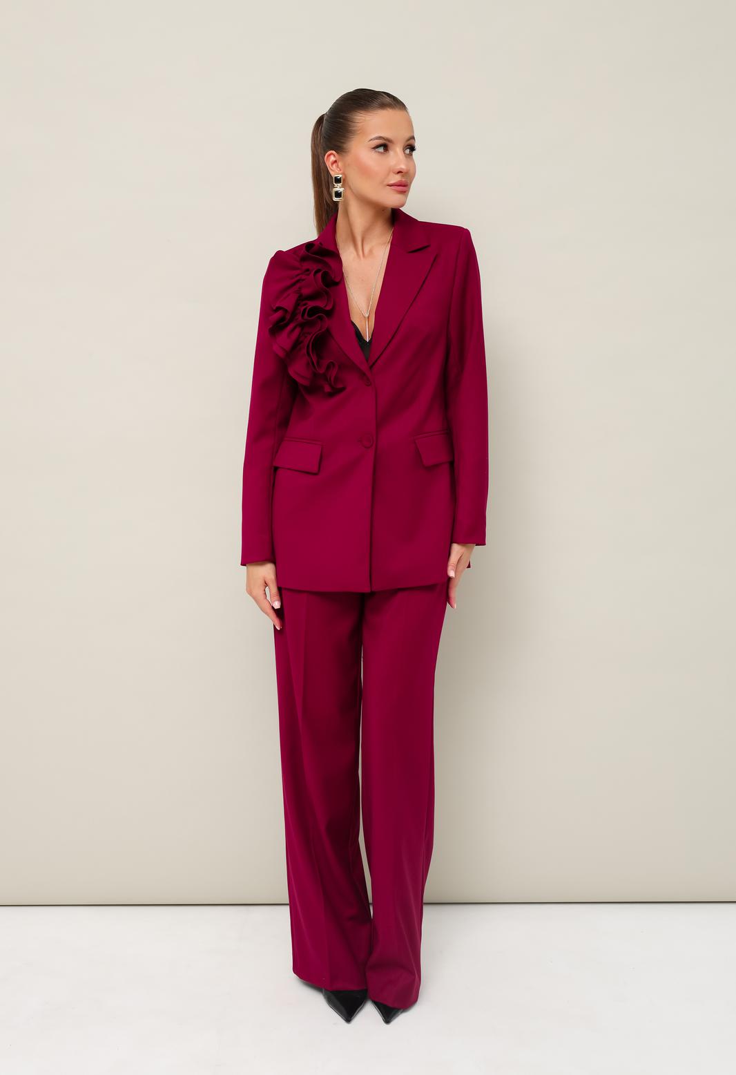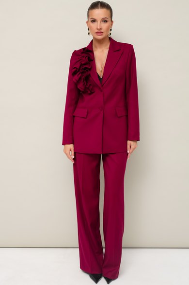 Эффектный 2-предметный комплект,состоящий из жакета и брюк, выполненный из костюмной ткани. Жакет женский