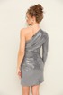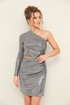 Платье прилегающего силуэта, с боковым вырезом.Ткань с металлической обработкой в виде пайеток.
