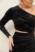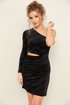 Платье прилегающего силуэта, с боковым вырезом. Ткань велюр с напылением блесток.
