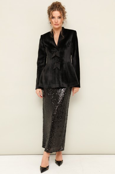 Юбка, декорирванная пайетками, на подкладке. Пояс на резинке,хорошо тянется. Юбка прямого полуприлегающего силуэта.