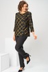 - Тип ткани: Блузон: полиэстер 69%, вискоза 29%, эластан 2%. Брюки: 70% П/Э, 25% Вискоза, 5% Спандекс