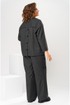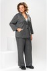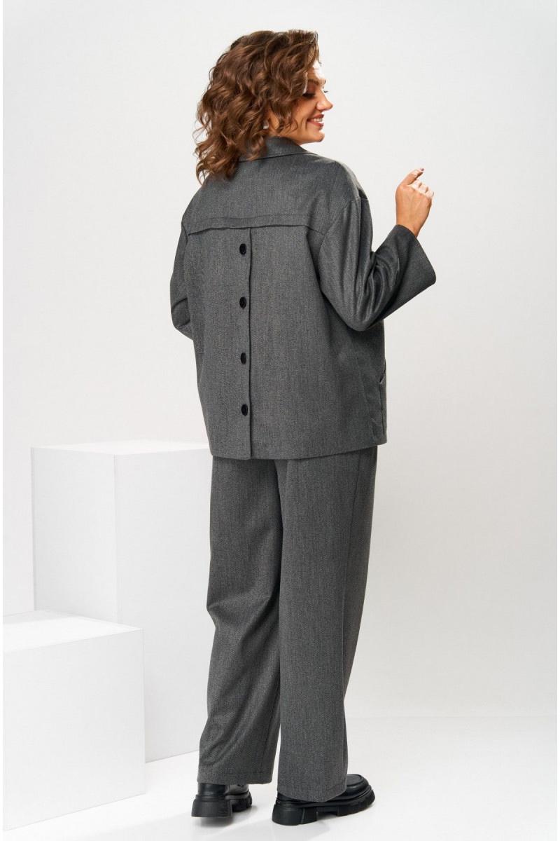Костюм женский предназначен для повседневной носки. Костюм женский 2-х предметный жакет и брюки. Жакет женский прямого силуэта, свободного кроя, длиной ниже линии бёдер на 5 см. Перед с 2-мя нагрудными вытачками, с 2-мя накладными фигурными карманами, левый декорирован надстрочной аппликацией. Спинка с отрезной кокеткой, с застёжкой в среднем шве на 4-и обмётанных петли и 4-и пришивных пуговицы. Горловина с V-образным вырезом, с воротником втачным пиджачного типа с притачным лацканом. Застёжка центральная бортовая на 2-е обмётанные петли и 2-е пришивные пуговицы. Жакет со спущенным плечом. Рукав втачной одно шовный, длиной 7/8. Жакет на притачной подкладке. Жакет без плечевых накладок. Брюки женские прямые, длинные. Передние половинки с карманами в боковых швах. Задние половинки с таллиевыми вытачками. Левый боковой шов со шлицей, фиксирующейся на 4-и обмётанные петли и 4-и пришивные пуговицы. Брюки с притачным поясом, декорированным надстрочной аппликацией и частично собранным на эластичную тесьму, закреплённую 2-мя отдельными строчками. Длина спинки жакета 68 см, длина рукава 46 см. Длина брюк по боковому срезу 102 см.