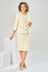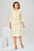 Костюм женский предназначен для повседневной носки. Костюм женский 2-х предметный жакет и юбка. Жакет женский полу прилегающего силуэта, длиной до линии бёдер. Перед с 2-мя талиевыми вытачками, с 2-мя накладными карманами, с 2-мя закруглёнными концами, с 2-мя прямоугольными клапанами, фиксирующиеся к карманам на петли обмётанные и пришивные пуговицы. Спинка со средним швом и 2-мя талиевыми втачками. Горловина круглая, обточная, без воротника. Застёжка центральная бортовая на 5-ть обмётанных петель и 5-ть пришивных пуговиц. Рукав втачной, 2-х шовный, длиной 3/4. Жакет с приточной подкладкой. Жакет с плечевыми накладками. Юбка женская карандаш длиной за колено. Переднее полотнище цельнокроеное. Заднее полотнище с 2-мя талиевыми выточками со средним швом, заканчивающимся шлицей. Застёжка на потайную тесьму-молнию В среднем шве заднего полотнища. Юбка с приточным поясом, собранным по бокам на эластичную тесьму с застёжкой на 1-ну обмётанную петлю и 1-ну пришивную пуговицею Юбка на подкладке. Длина спинки жакета 57 см, длина рукава 47 см, длина юбки по боковому срезу 61 см.