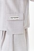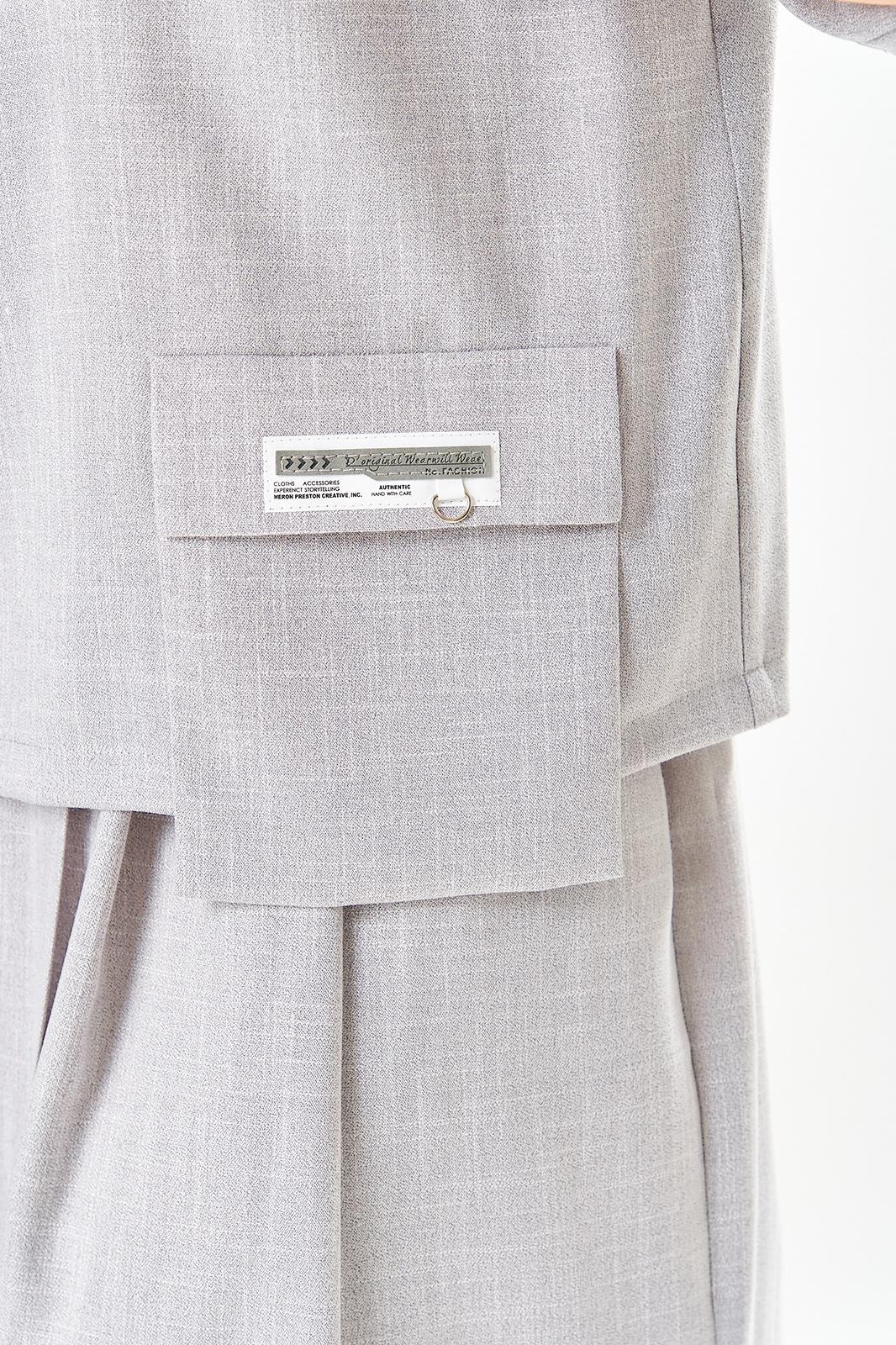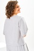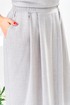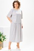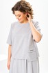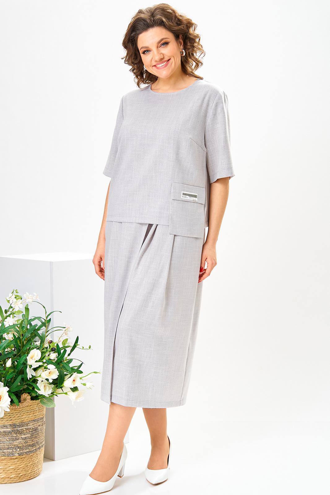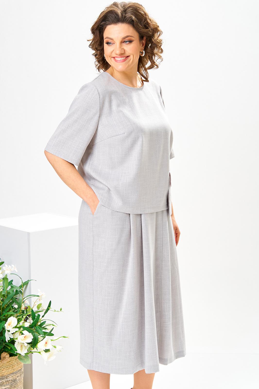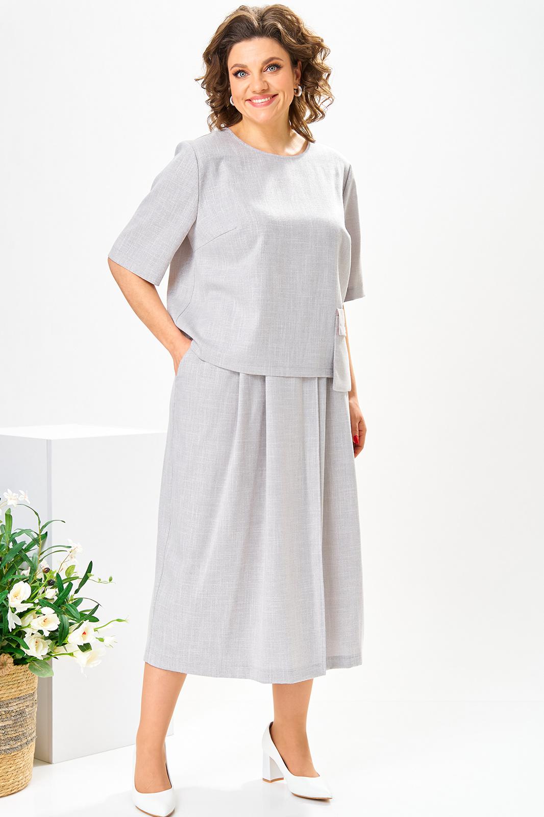 Костюм женский, предназначен для повседневной носки. Костюм женский 2-х предметный, блузон и юбка-брюки. Блузон женский прямого силуэта, длиной выше линии бёдер на 4 см. Перед с 2-мя нагрудными вытачками, с накладным отлётным прямоугольным карманом с клапаном, декорированным надстрочной аппликацией на левой части переда. Спинка цельнокроеная. Горловина круглая, обточная, без воротника. Рукав втачной одно шовный, длиной до локтя. Блузон без плечевых накладок. Юбка-брюки свободного покроя, длиной до нижней части икры. Передние половинки с отлётной отделочной деталью справа имитирующей запах. Передние половинки с карманами в боковых швах с отрезными бочками с 2-мя односторонними складками на линии талии. Юбка брюки с притачным поясом, частично собранным на эластичную тесьму, закреплённую 2-мя отделочными строчками. Длина юбки-брюк 83 см. Длина спинки блузона 53 см, длина рукава 31,5 см.