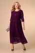 Платье женское отрезное по линии талии, предназначено для торжественного выхода. Перед: верхняя часть с двумя талиевыми вытачками, нижняя часть с тремя встречными бантовыми складками. Горловина круглая, обтачная, без воротника. Застежка на 7 пришивных пуговиц в среднем шве спинки. Рукав втачной, одно шовный, длиной 3/4. Платье на подкладке с плечевыми накладками. Длина спинки 120 см . Длина рукава 39 см