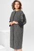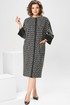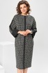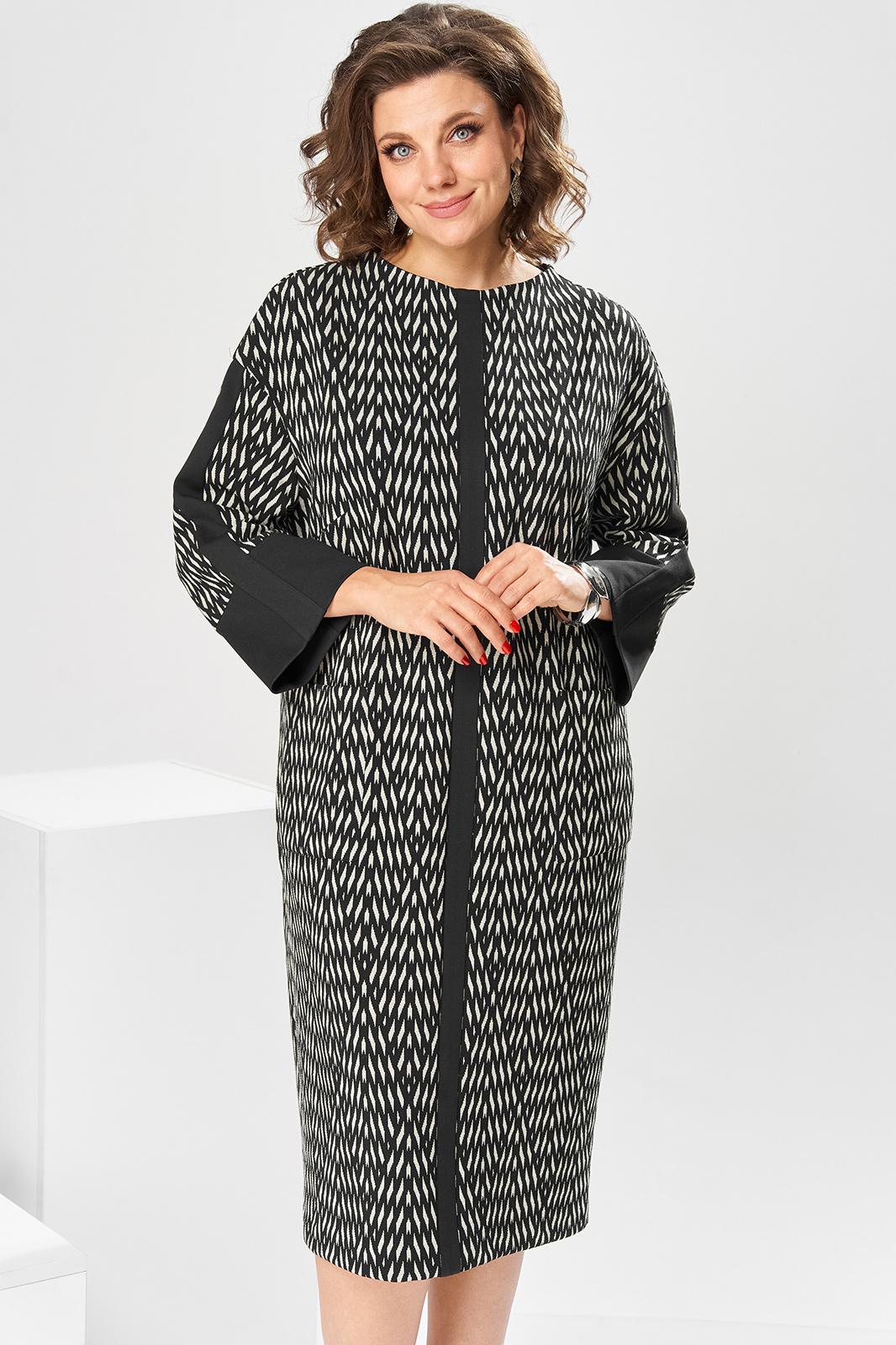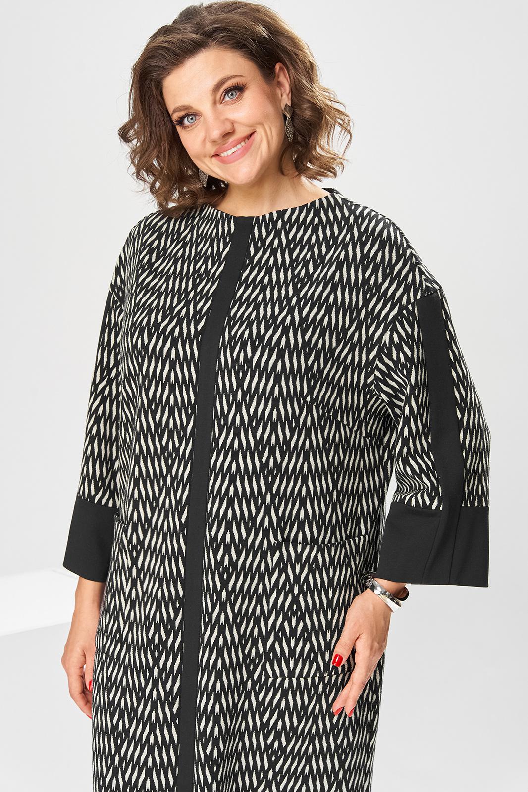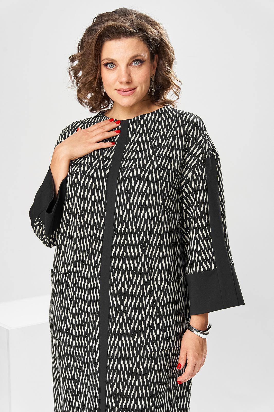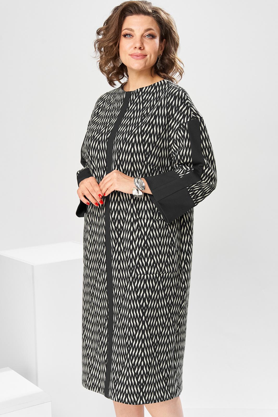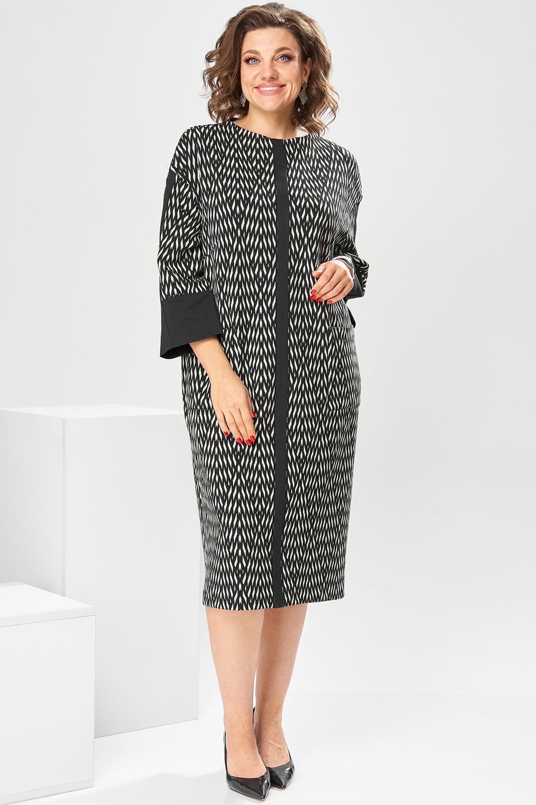 Платье женское для повседневной носки. Платье женское полу прилегающего силуэта, длиной за колено. Перед с 2-мянагрудными выточками, с 2-мя накладными прямоугольными карманами, на уровне линии бёдер, с приточной вертикальной планкой из отделочной ткани. Спинка со средним швом, заканчивающимся разрезом. Застёжка на потайную тесьму-молнию в среднем шве спинки. Горловина с цельнокроеной стойкой, обточная. Платье со спущенным плечом. Рукав втачной, длиной 7/8 с приточной манжетой из отделочной ткани и приточной вертикальной планкой из отделочной ткани по центру. Платье без плечевых накладок. Длина спинки 107 см, длина рукава от горловины 61 см.