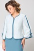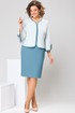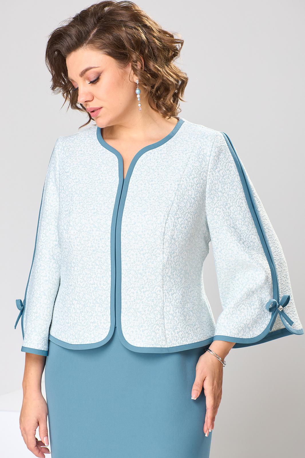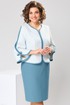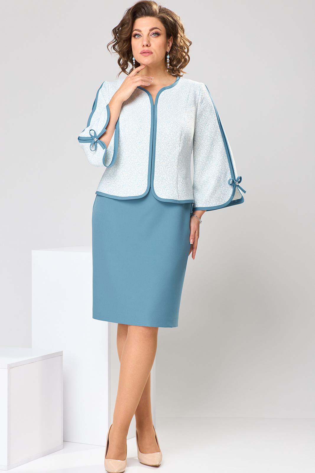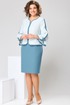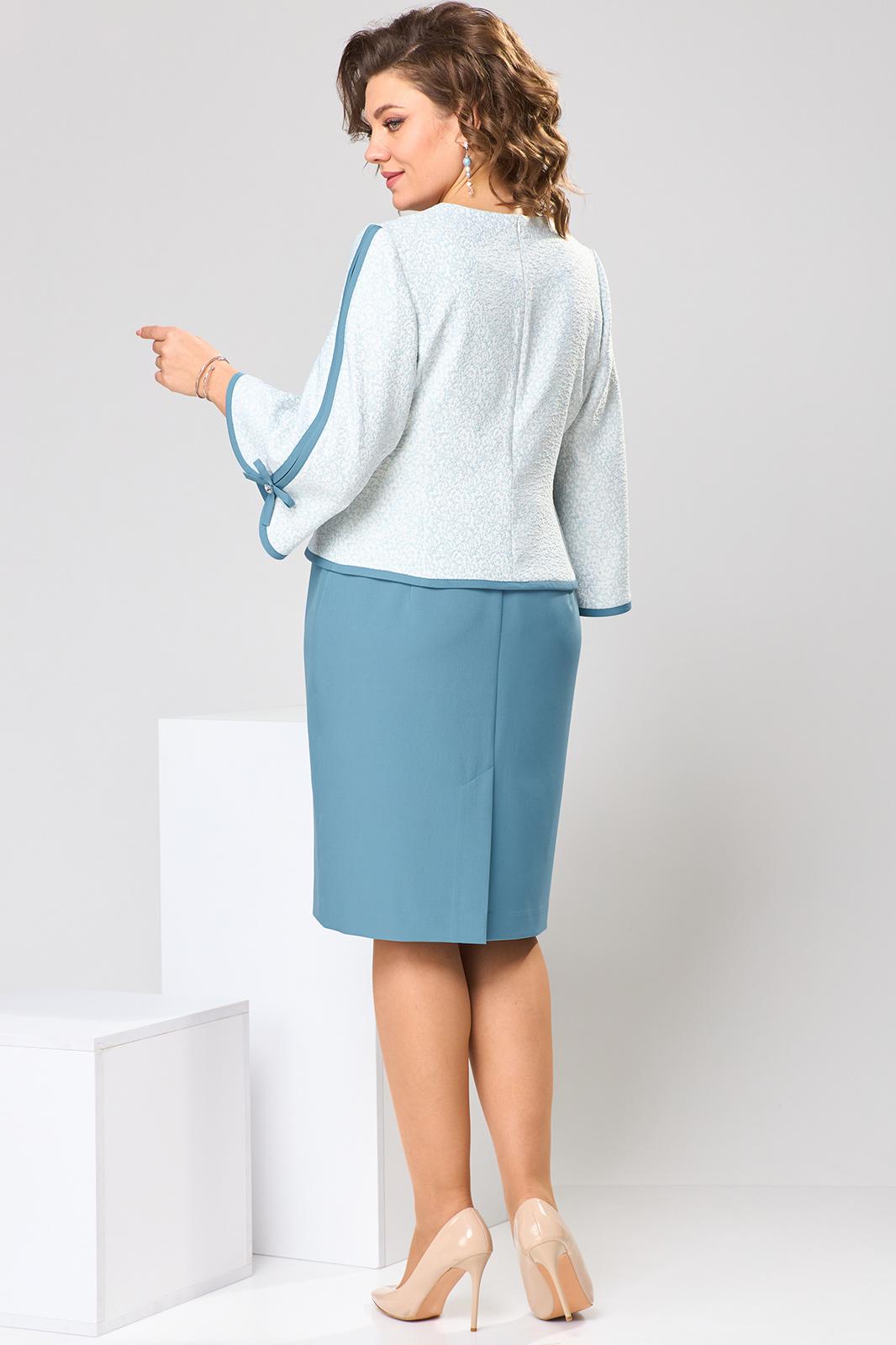Платье женское, относится к торжественной одежде. Платье женское, полуприлегающего силуэта, длиной за колено. Платье отрезное по линии талии, выполнено имитацией костюма. Верхняя часть переда с 2-мя отрезными рельефами, выходящими из плечевых швов. Верхняя часть спинки с 2-мя отрезными бочками и средним швом. Застёжка на потайную тесьму-молнию в среднем шве спинки. Горловина фигурная. Припуски горловины среднего шва переда и низа верхней части обработаны косой бейкой шириной 1-1 см. Рукав 2-х шовный, втачной, длиной 7/8. припуски верхнего шва рукава и низа обработаны косой бейкой, шириной 1,1 см. Рукав декорирован пришивным бантом со стразой. Нижняя часть переда без конструктивных особенностей нижняя часть спинки с 2-мя таллиевыми вытачками и средним швом, заканчивающимся шлицей. Платье на подкладке отрезной по линии талии. Платье с плечевыми накладками. Длина спинки платья 99 см, длина рукава 49 см.