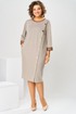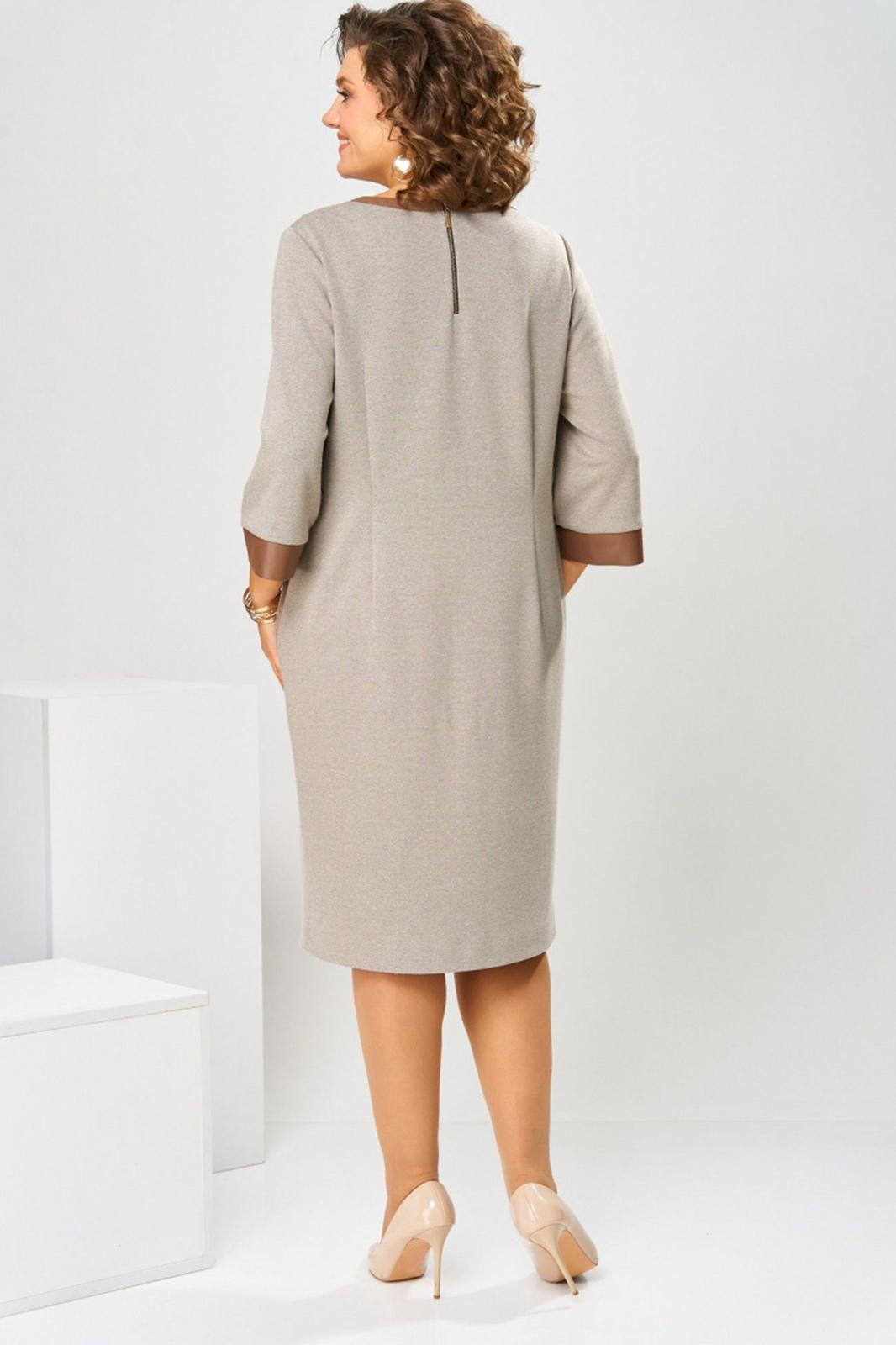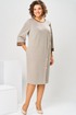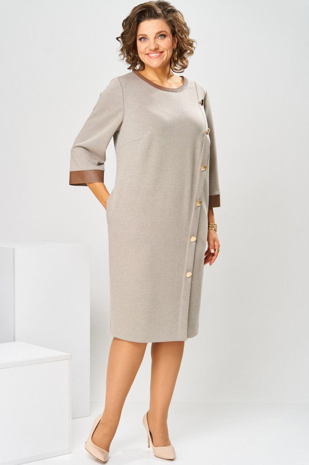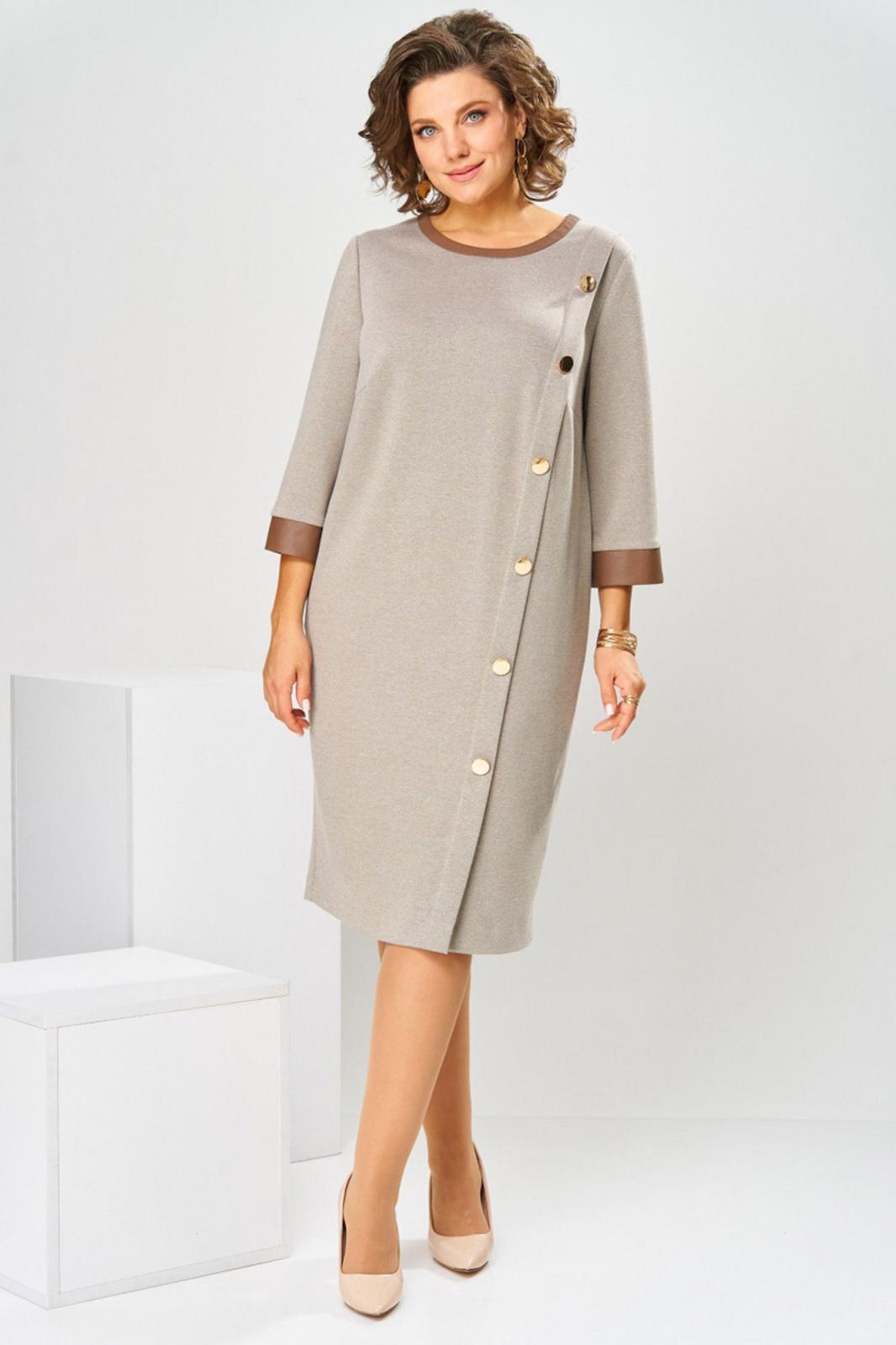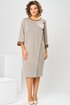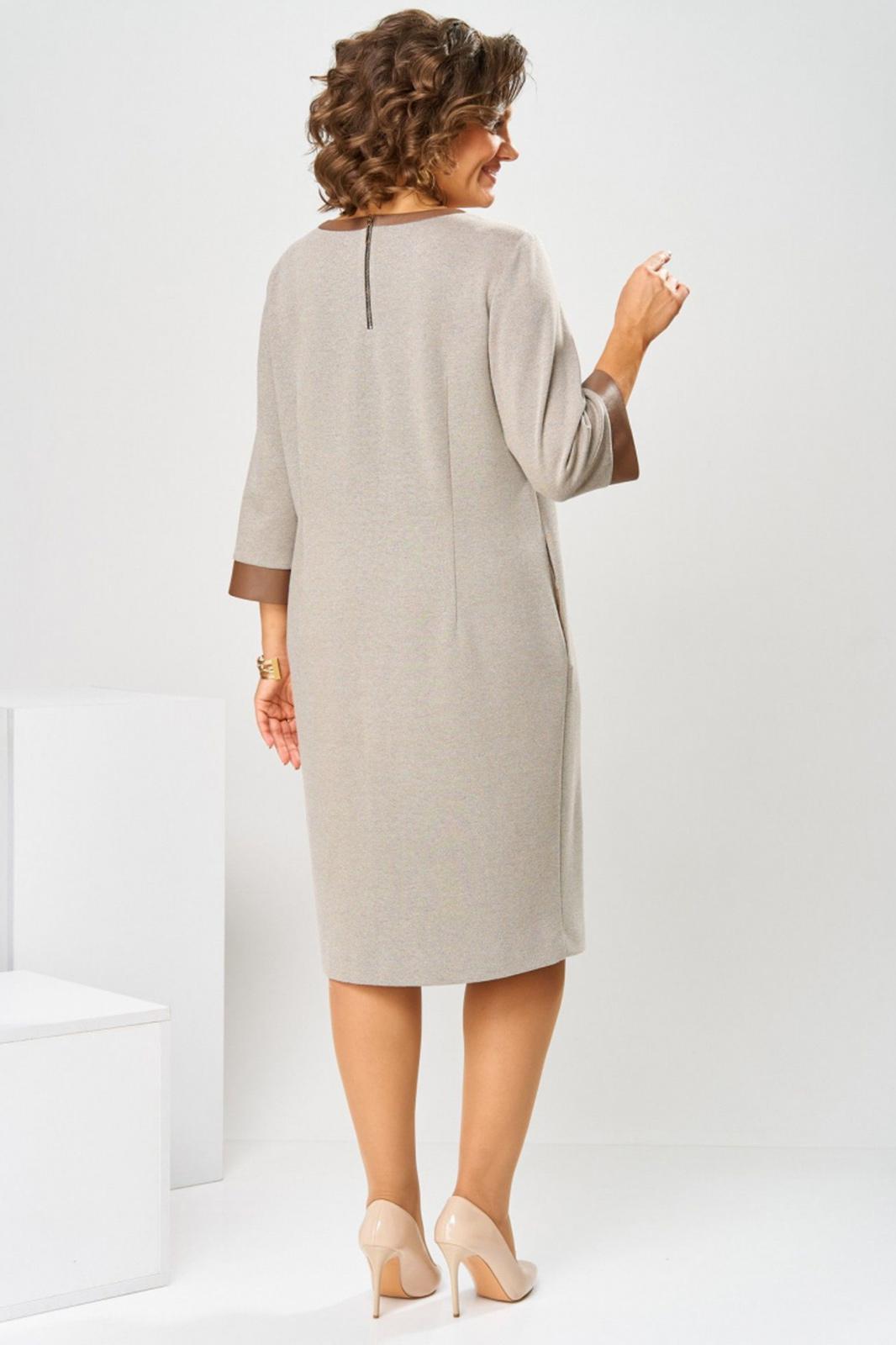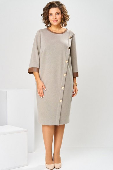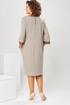 Платье предназначено для повседневной носки. Платье женское, полуприлегающего силуэта, длиной за колено. Перед с 2-мя нагрудными вытачками, с цельнокроенной вертикальной планкой шириной 3,5 см, закреплённой к переду 6-ю пришивными декоротивными пуговицами; перед с втачной планкой из лтделочной ткани. Спинка с 2-мя таллиевыми вытачками, с втачной металлической молнией, с втачной планкой из отделочной ткани по горловине. Платье с карманами в боковых швах. Рукав втачной, одношовный с притачной манжетой из отделочной ткани, рукав длиной 3/4. Платье с плечевыми накладками. Длина спинки платья 103,5 см, длина рукава 47 см.