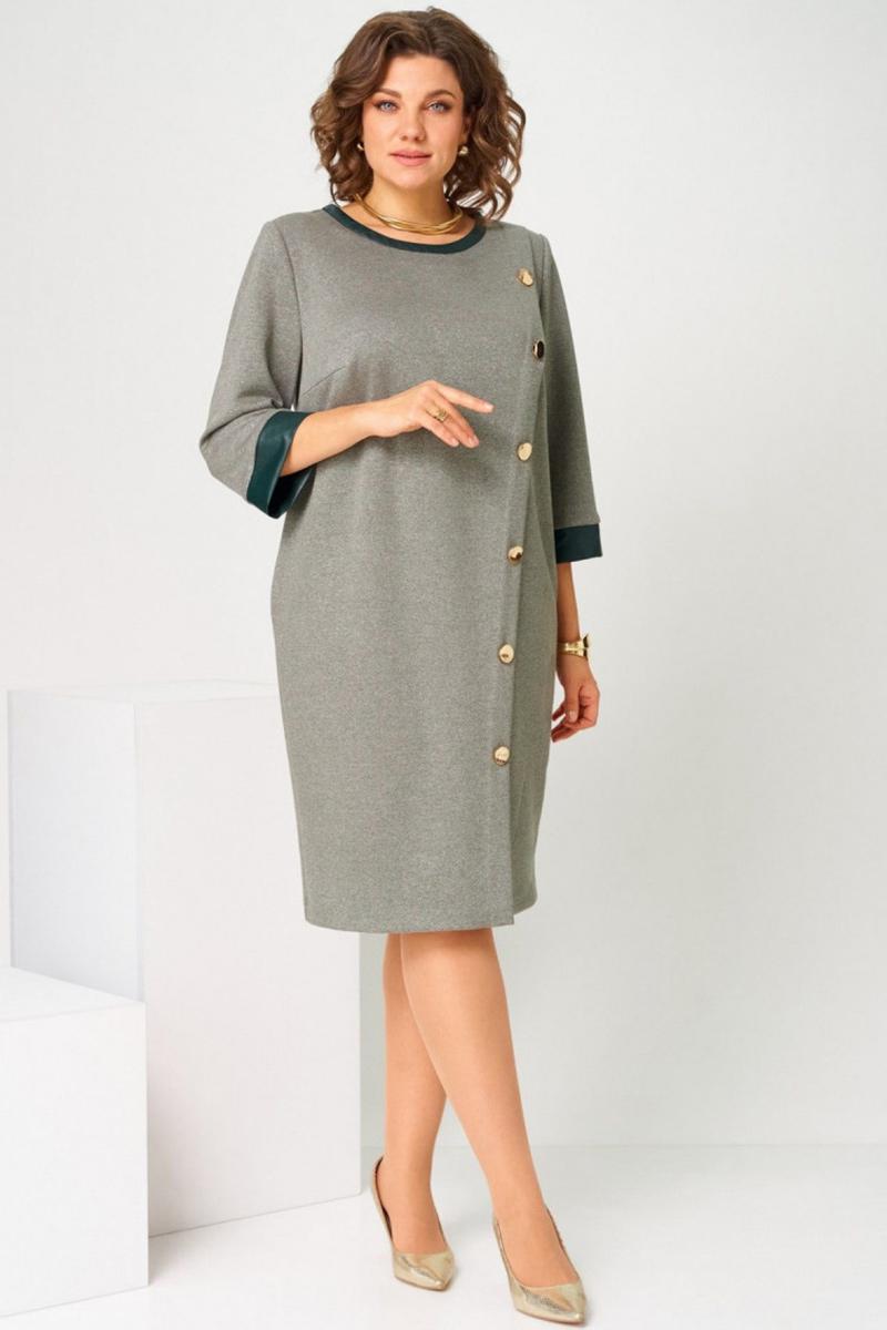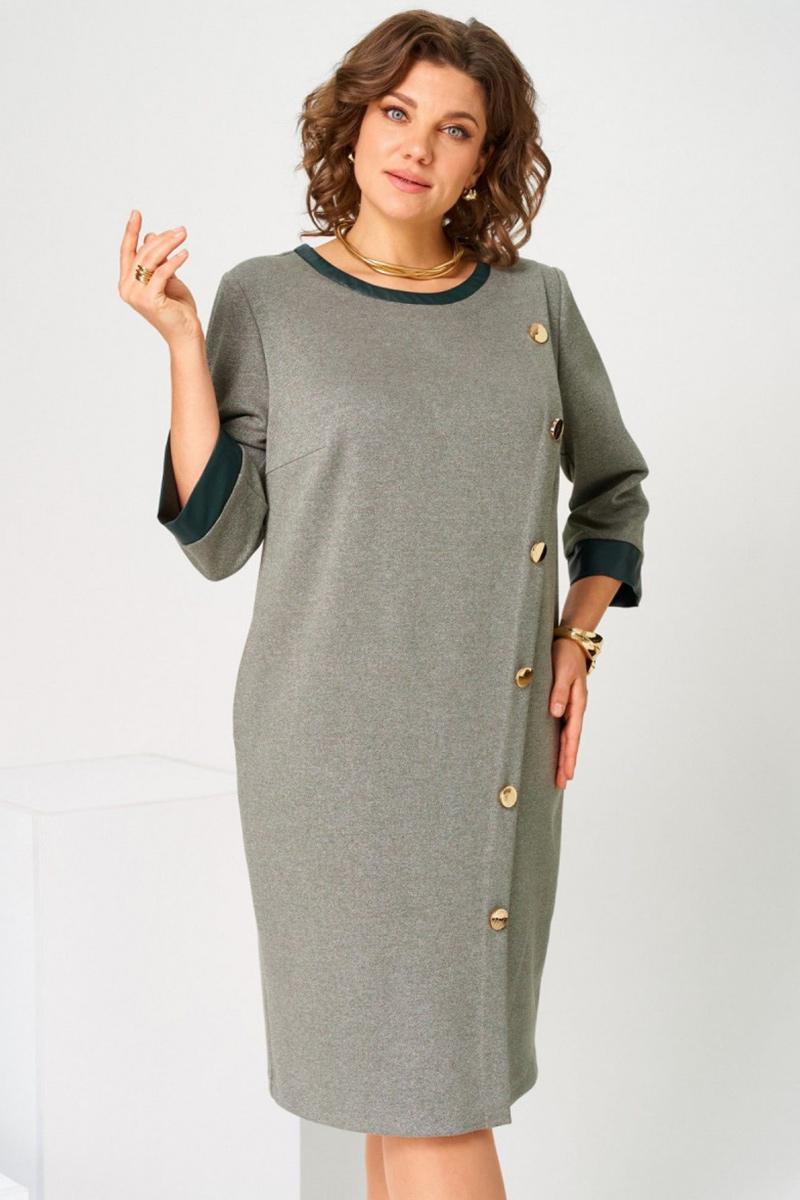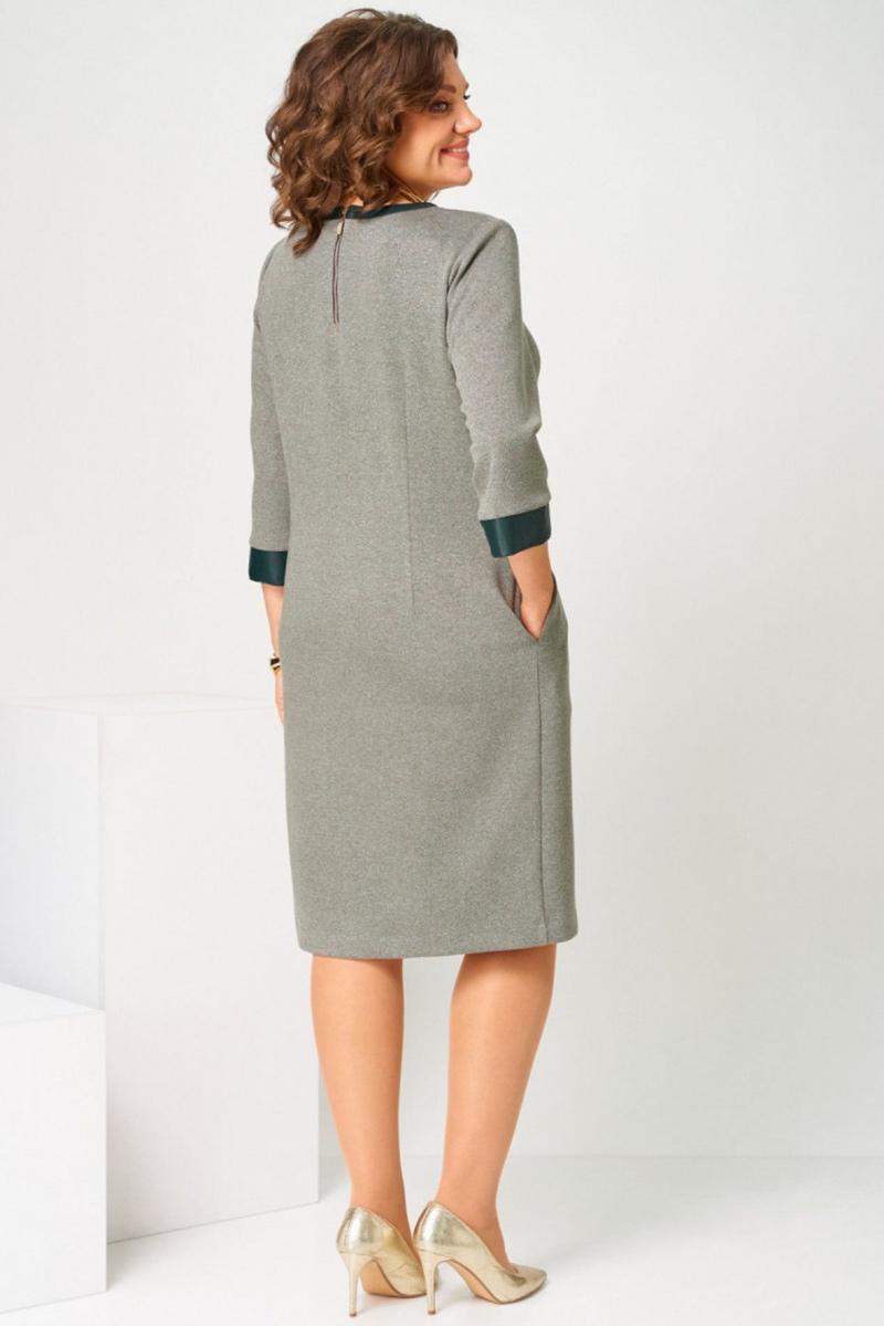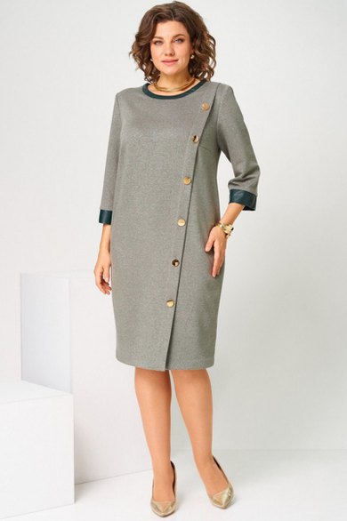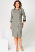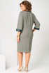 Платье предназначено для повседневной носки. Платье женское, полуприлегающего силуэта, длиной за колено. Перед с 2-мя нагрудными вытачками, с цельнокроенной вертикальной планкой шириной 3,5 см, закреплённой к переду 6-ю пришивными декоротивными пуговицами; перед с втачной планкой из лтделочной ткани. Спинка с 2-мя таллиевыми вытачками, с втачной металлической молнией, с втачной планкой из отделочной ткани по горловине. Платье с карманами в боковых швах. Рукав втачной, одношовный с притачной манжетой из отделочной ткани, рукав длиной 3/4. Платье с плечевыми накладками. Длина спинки платья 103,5 см, длина рукава 47 см.
