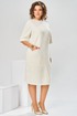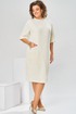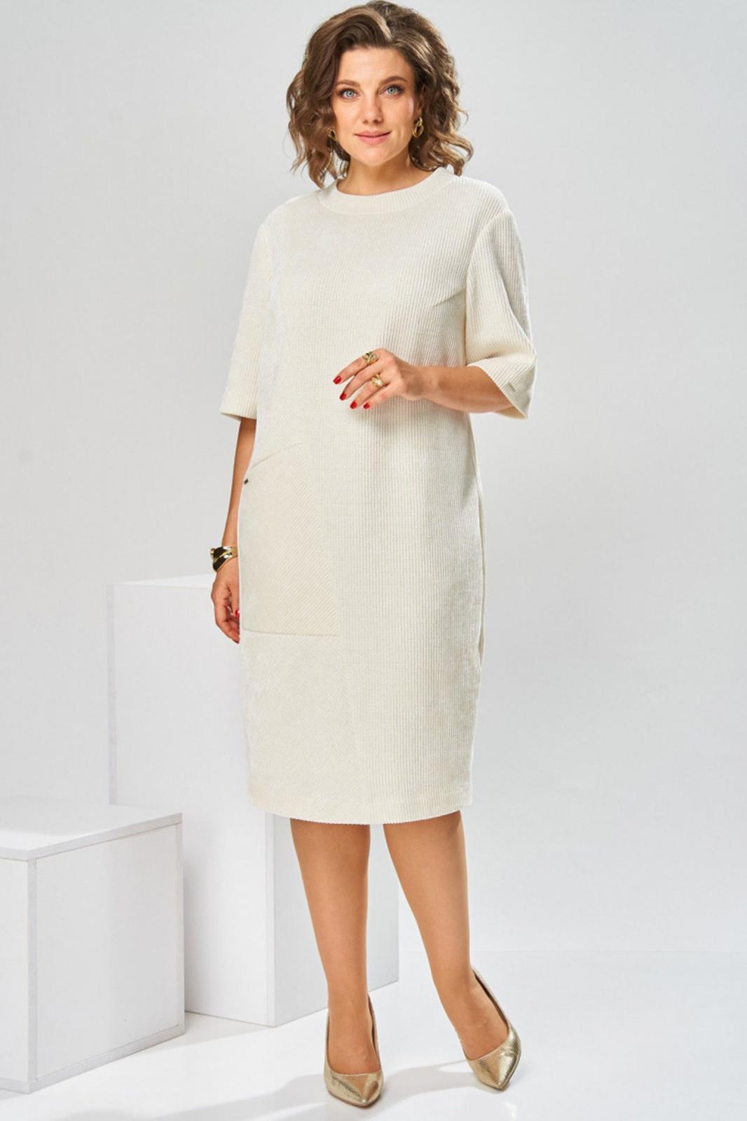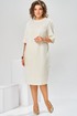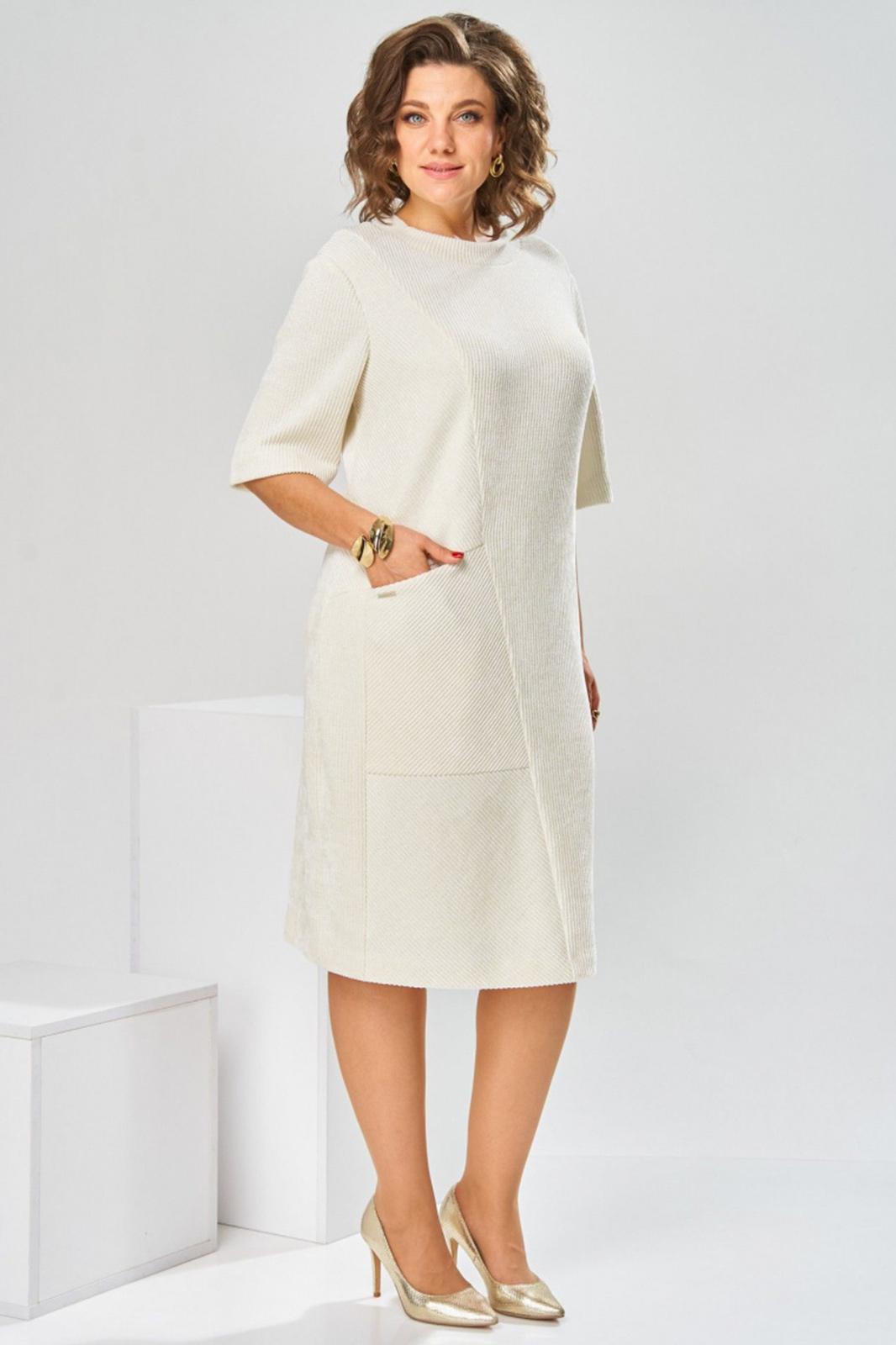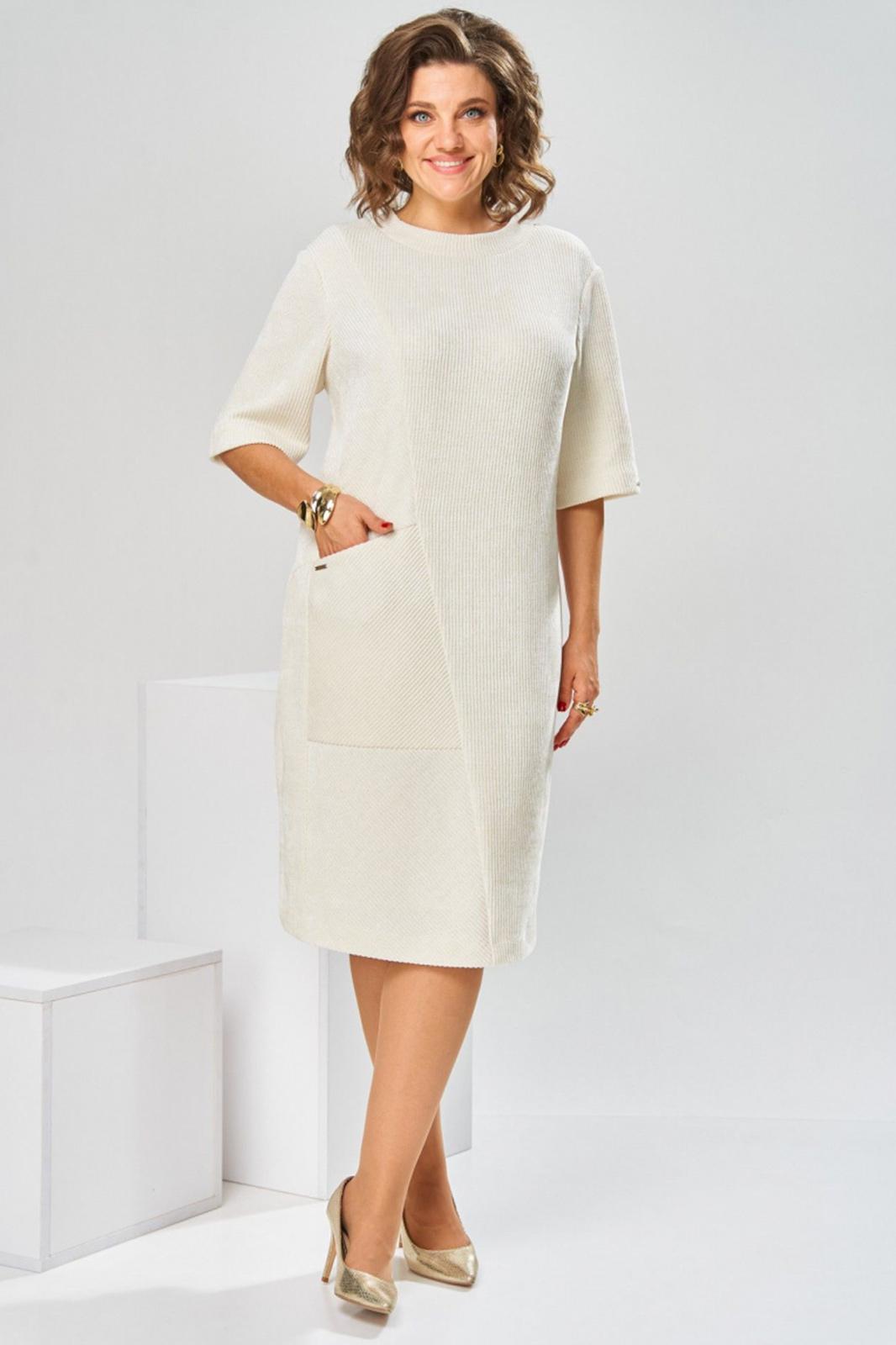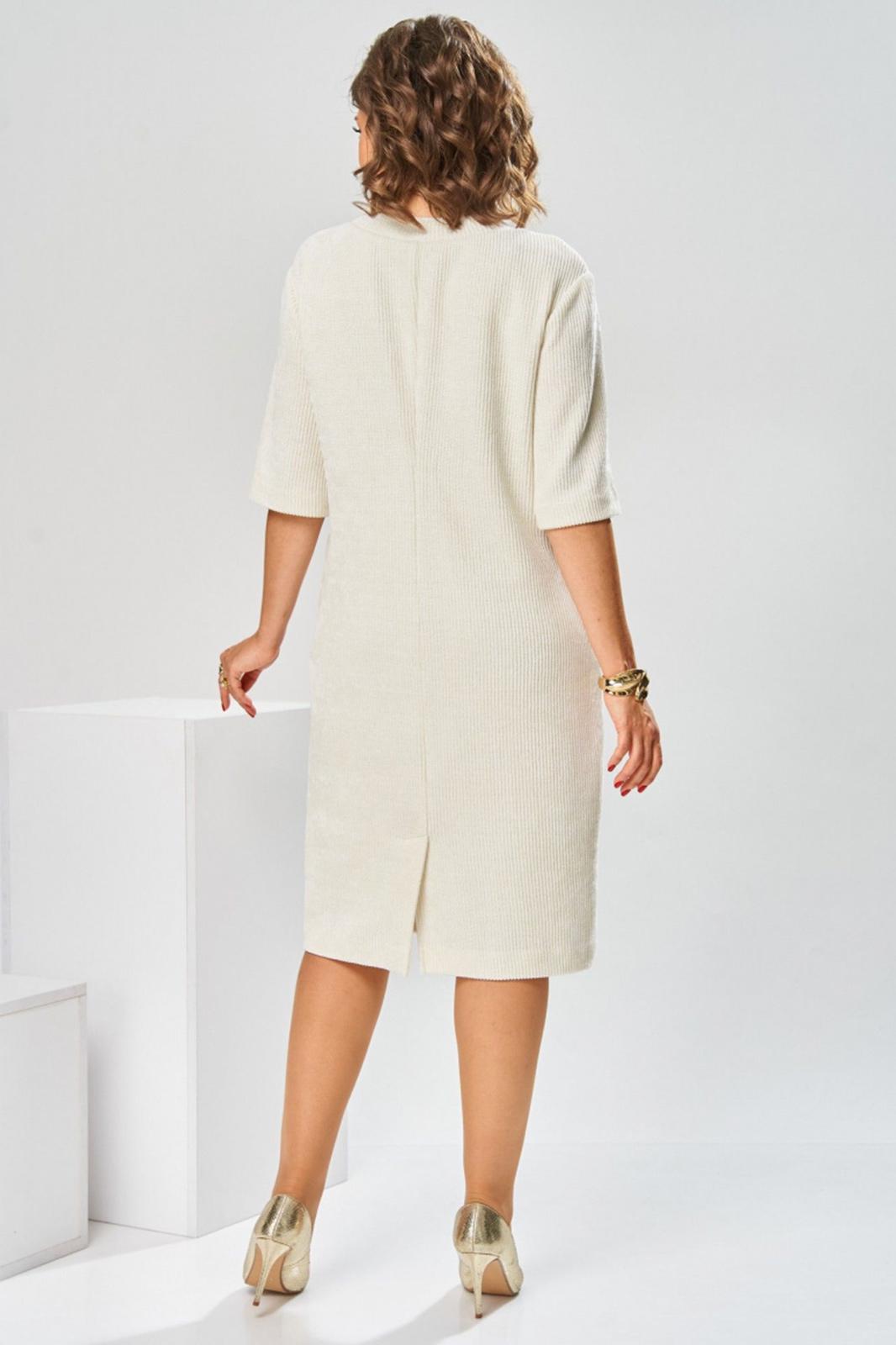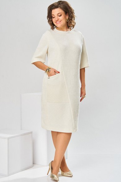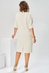 Платье предназначено для повседневной носки. Платье женское, полуприлегающего силуэта, длиной за колено. Перед с 1-ной нагрудной вытачкой слева, с 1-ним рельефом справа выходящим из плечевого шва, на рельефе обрпботан накладной карман, декорированный пришивной метпллической пластиной. Спинка со средним швом, заканчивающимся шлицей. Горловина круглая с втачной стойкой. Платье со спущенным плечом. Рукав втачной, одношовный, длиной до локтя, левый рукав декорирован пришивной металлической пластиной. Платье на подкладке. Платье без плечевых накладок. Длина спинки платья 97 см, длина ркукава 36 см.