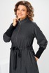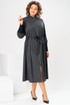 Платье женское, предназначено для повседневной носки. Платье женское расширенное к низу, длиной до середины икры. Перед с 2-мя нагрудными вытачками, отрезное по линии талии, нижняя часть с зафиксированными односторонними складками. Спинка цельно кроенная с настрочной аппликацией выше линии талии. В боковых швах обработаны карманы. На уровне линии талии платье с настрочным поясом-кулисой по спинке собранным на эластичную тесьму, по переду, отделочную тесьму. Горловина круглая, с втачной стойкой. Застёжка центральная, бортовая на разъёмную металлическую тесьму-молнию. Платье со спущенным плечом. Рукав втачной, одно шовный, длинный, с притачной манжетой из отделочной ткани, правый рукав с настрочной аппликацией. Платье без плечевых накладок. Длина спинки платья 119 см, длина рукава 55 см.