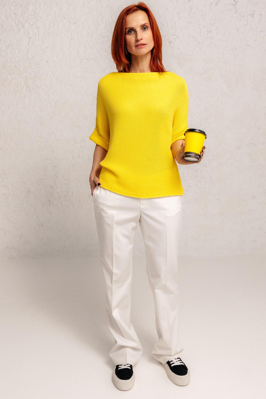 Классический универсальный женский джемпер прямого силуэта выполнен из мягкой и уютной хлопковой пряжи. В нашем джемпере Вы будете чувствовать себя комфортно. К тому же джемпер Romgil, как отличные базовые элементы гардероба, легко сочетаются в повседневном, офисном, вечернем и классическом стиле. Носи с классическими брюками, брюками палаццо,костюмами, джинсами, юбками-плиссе и шортами. Идеально подходит для повседневной носки. Приятный к телу и легкий в уходе, после стирки - не линяет, не изменяет форму. Длина изделия, для всех размеров, по спинке (от ростка) 53 см.