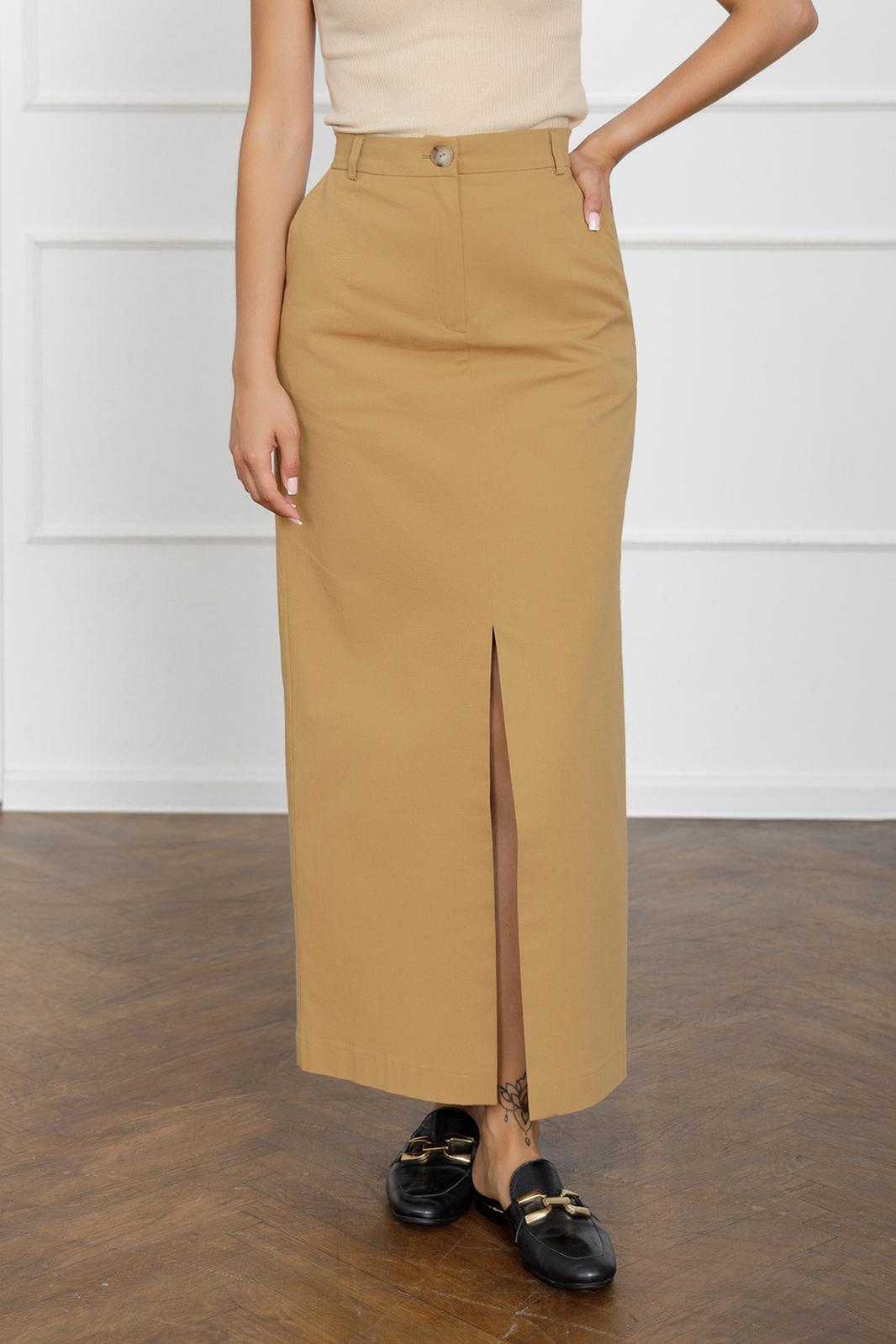 Элегантная юбка-карандаш приятных оттенков с разрезом.