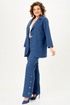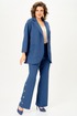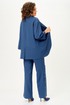 Брюки прямого силуэта с декоративной застежкой по низу в боковых швах. Передние половинки брюк с карманами. Брюки с застежкой на молнию, по поясу на петлю и пуговицу. По бокам резинка для удобства посадки на талии. Костюм без подкладки.