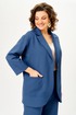 Жакет свободного прямого силуэта с втачным рукавом и спущенной линией плеча создает комфортный и расслабленный образ. Модель с отложным воротником с застежкой на одну петлю и пуговицу и двумя накладными карманами. Шлица в среднем шве спинки. Рукав длиной ¾, с отложной манжетой по низу.