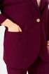 Жакет свободного прямого силуэта с втачным рукавом и спущенной линией плеча создает комфортный и расслабленный образ. Модель с отложным воротником с застежкой на одну петлю и пуговицу и двумя накладными карманами. Шлица в среднем шве спинки. Рукав длиной ¾, с отложной манжетой по низу.