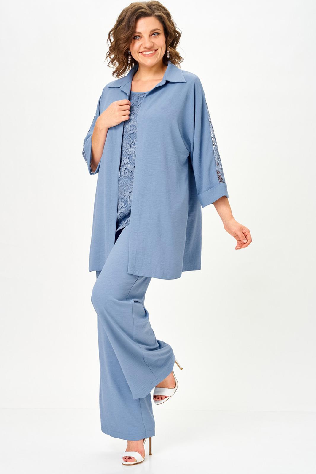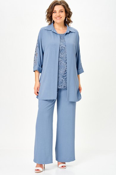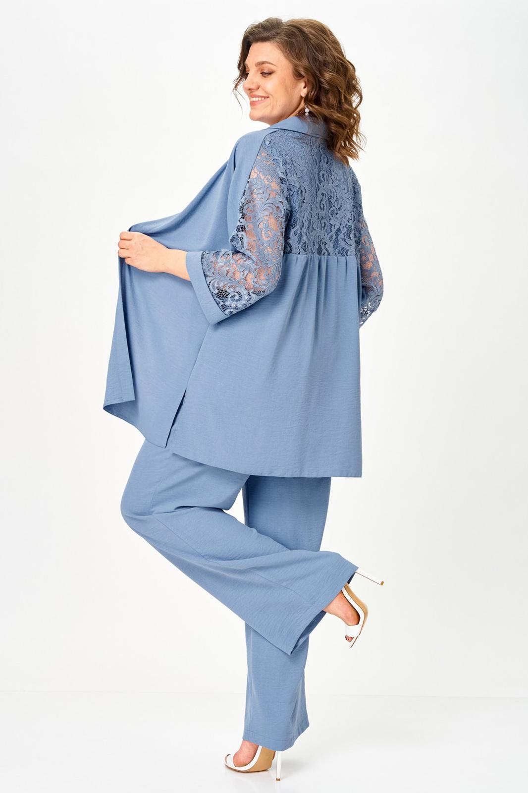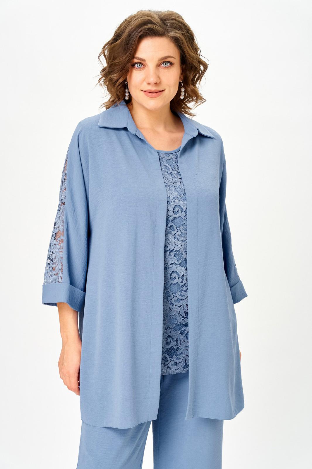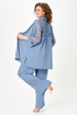 Жакет прямого силуэта с цельнокроенным рукавом летучая мышь, без застежки. По горловине отложной воротник на стойке. Спинка со сборкой из-под кокетки. В боковых швах обработаны разрезы. По низу рукава отложная манжета.