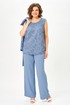 Топ полуприлегающего силуэта. Перед двойной, с вытачками по линии груди. В боковых швах обработаны разрезы. Горловина и проймы окантованы косой бейкой.