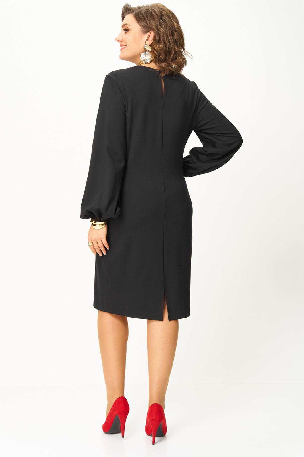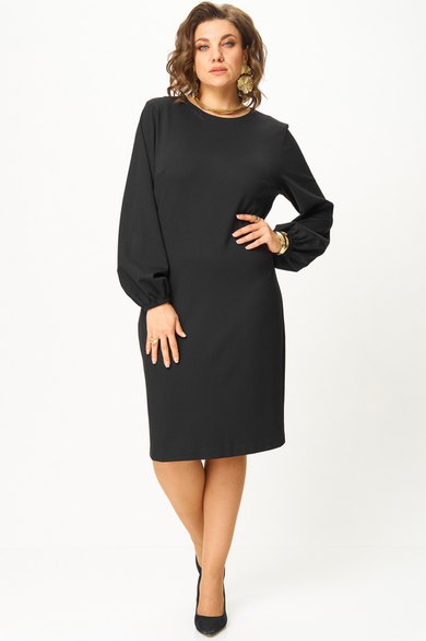 Платье женское из трикотажного полотна полуприлегающего силуэта с втачным рукавом, станет идеальным выбором для создания стильного и комфортного образа. Горловина округлой формы. Застежка по спинке на воздушную петлю и пуговицу. По переду вытачки по линии груди. Спинка со средним швом и разрезом по низу. Длинные объемные к низу рукава с эластичной тесьмой, добавляют романтичности и легкости.
