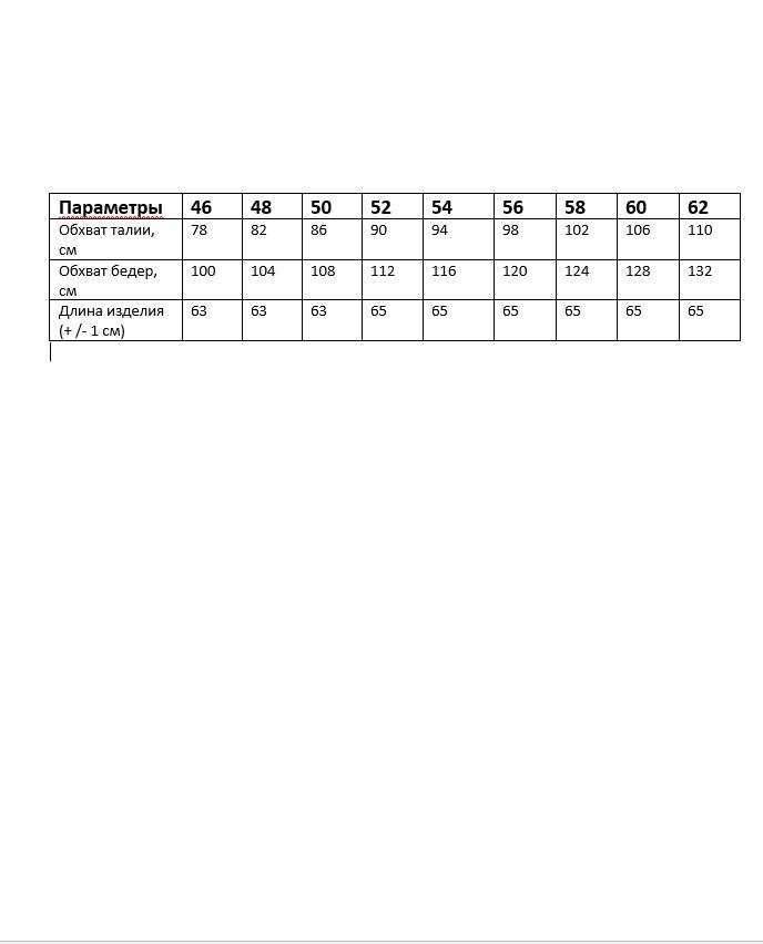 Длина по боковому шву вместе с поясом 65см (±1 см).