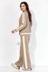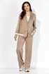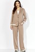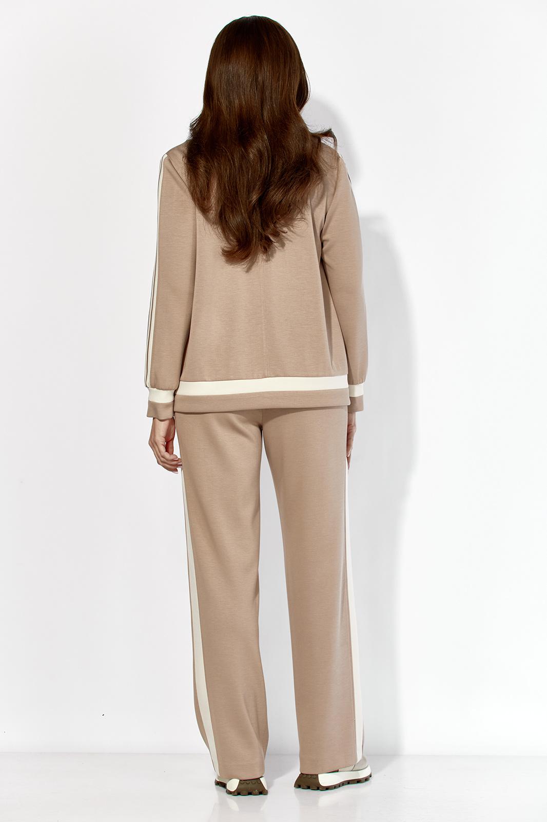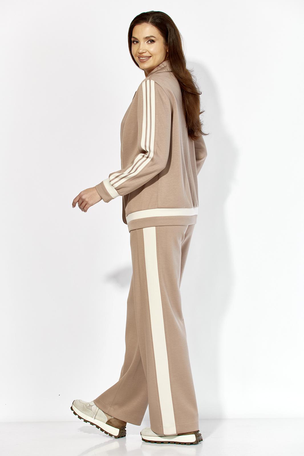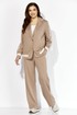Комплект женский, двухпредметный, состоящий из жакета и брюк, из трикотажного полотна T E N S E L Жакет прямого силуэта, по низу на широкой подрезной планке. По переду вертикальные рельефы. Воротник отложной с лацканами. Крой борта, по низу, закруглен. Застежка центральная, на кнопки. Рукав втачной, длинный с отделочным лампасом и манжетой по низу. Манжета рукава и планка низа, с отделочными деталями. Спинка со средним швом. Жакет без подкладки . Брюки прямые. По переду фигурные рельефы.Карманы в рельефах. По боку отделочный лампас. Пояс притачной, с резинкой. Центральная часть пояса гладкая.