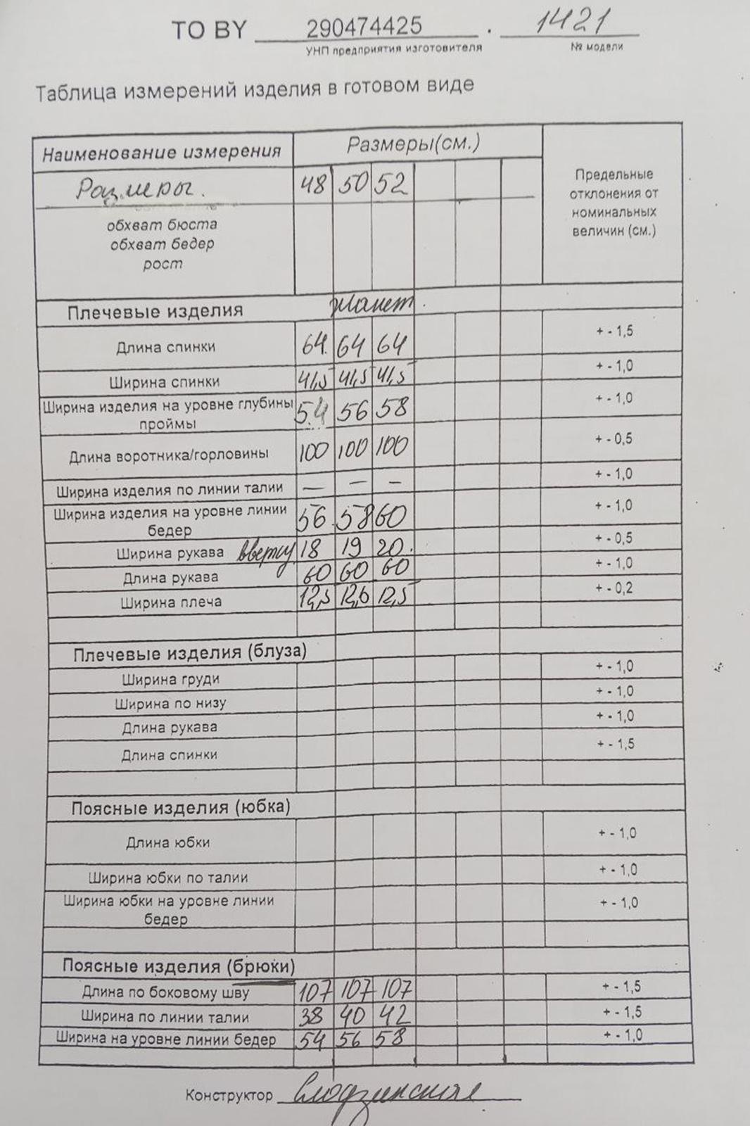 - Размерный ряд: 48-52