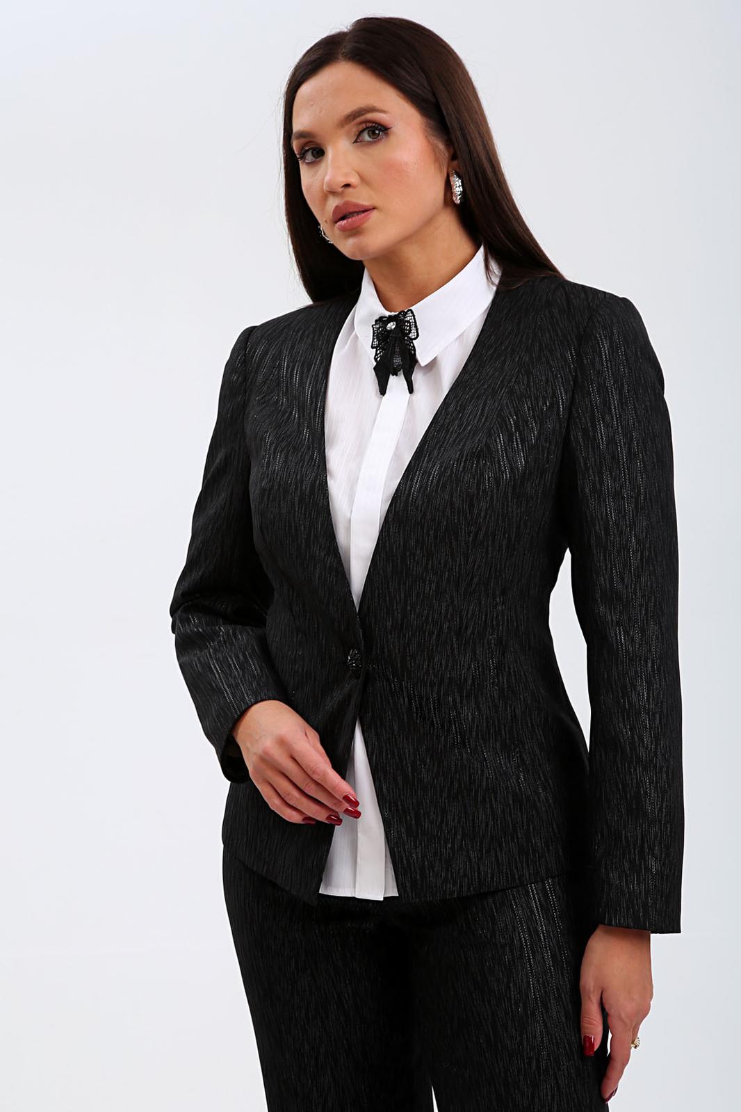 Жакет выполнен с центральной бортовой застежкой на одну пуговицу и имеет продольные рельефы, что придает ему утонченный силуэт. Жакет на подкладке, что добавляет дополнительный уровень комфорта и стиля.