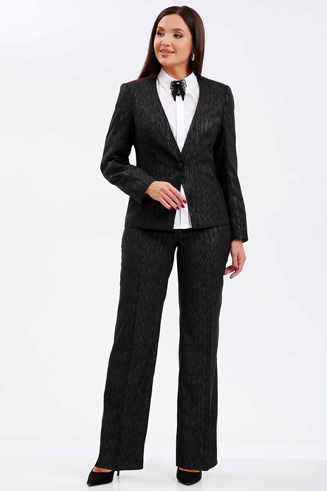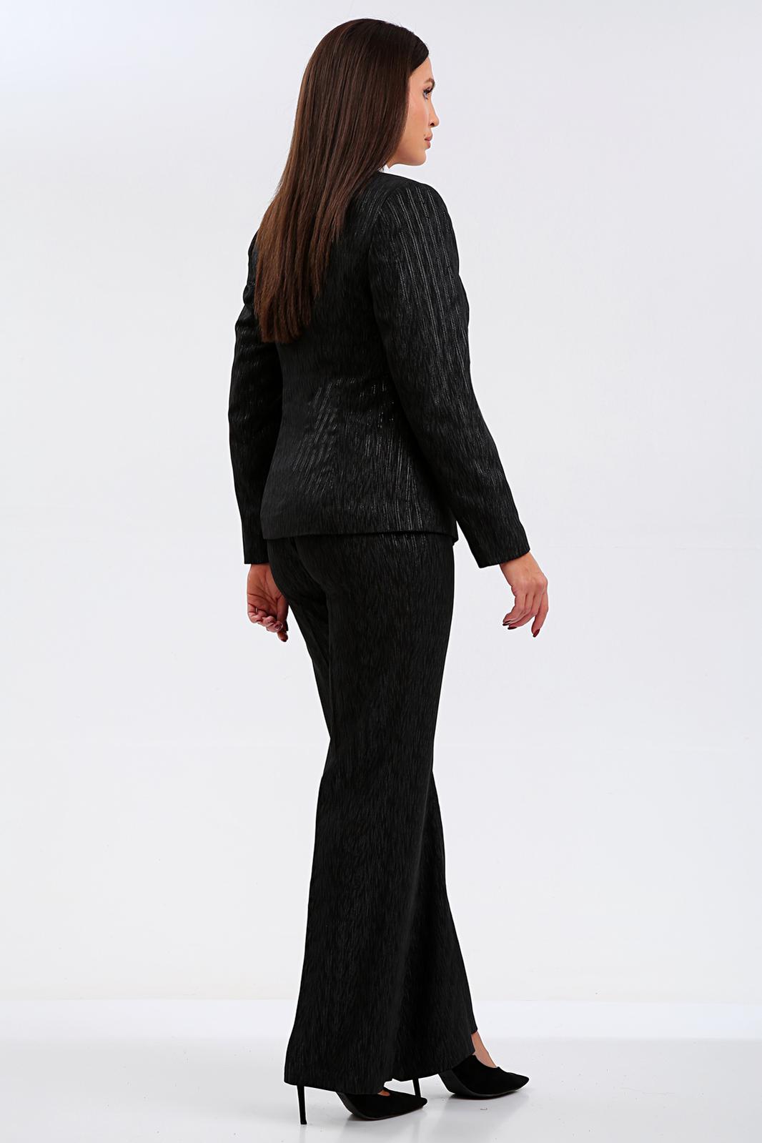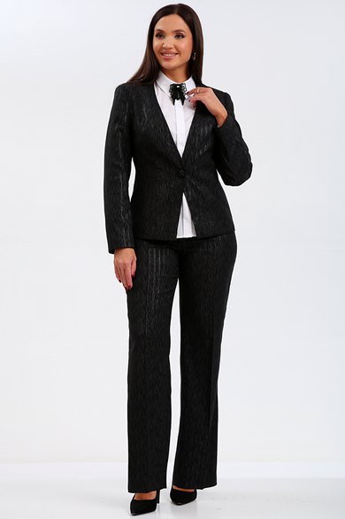 Брюки имеют классический прямой крой и удобный пояс, что делает их универсальными для сочетания с различными блузками и топами. Этот костюм идеально подходит для создания стильного образа как в деловой обстановке, так и на вечерних мероприятиях. Не упустите возможность добавить этот модный элемент в свой гардероб!
